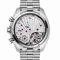 Chronoscope воплощает дух винтажных хронографов OMEGA 1940-х, мастерски переосмысленный через призму легендарного Speedmaster. 43-мм корпус из нержавеющей стали с синим безелемБезельВнешний ободок, закрепляющий стекло. В спортивных часах так называется поворотное кольцо с делениями на циферблате, выполняет роль таймера – замеряет отрезки времени на шкале. Неподвижный безель – элемент декора. Однонаправленно вращающийся безель на дайверских часах позволяет фиксировать моменты погружения и выныривания на поверхность. из анодированного алюминия представляет серебристый циферблат, украшенный тахиметрической шкалойТахиметрРазмеченная шкала, располагается на ободке или безеле часов. Тахиметр позволяет рассчитать скорость на определённом участке пути, расстояние измеряется в километрах или милях. и спиралевидным узором. Синие стрелки в форме листьев и арабские цифры добавляют характерный ретро-акцент. Три исторические шкалы в форме улитки - тахиметрическая, пульсометрическая и телеметрическая - создают уникальный измерительный комплекс. Функциональные счетчики на 3 и 9 часах гармонично интегрированы в дизайн. Браслет из нержавеющей стали завершает образ, а калибр OMEGA Co-Axial Master Chronometer 9908 гарантирует прецизионную точность, соединяя наследие с инновациями.