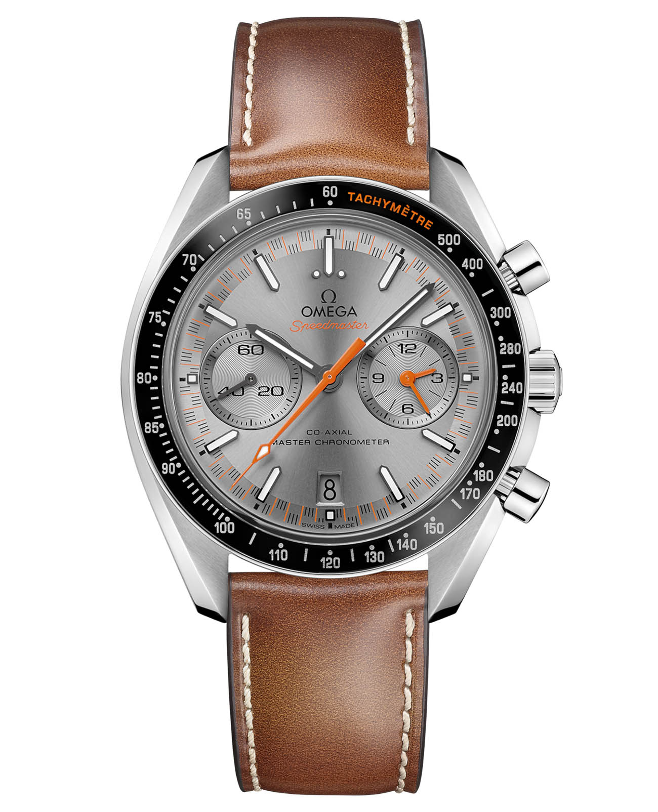 Speedmaster Racing Master Chronometer в 44,25-мм корпусе из нержавеющей стали с коричневым кожаным ремешком представляет собой гармоничное сочетание автоспортивной эстетики и часового искусства. Черное керамическое кольцоБезельВнешний ободок, закрепляющий стекло. В спортивных часах так называется поворотное кольцо с делениями на циферблате, выполняет роль таймера – замеряет отрезки времени на шкале. Неподвижный безель – элемент декора. Однонаправленно вращающийся безель на дайверских часах позволяет фиксировать моменты погружения и выныривания на поверхность. с тахиметрической шкалойТахиметрРазмеченная шкала, располагается на ободке или безеле часов. Тахиметр позволяет рассчитать скорость на определённом участке пути, расстояние измеряется в километрах или милях. эффектно сочетает оранжевые надписи с высокотехнологичными цифрами из Liquidmetal™. Серый циферблат с радиальным сатинированием и характерной "спидометрной" минутной шкалой дополнен двумя счетчиками с родиевыми кольцами и окошком даты на 6 часах. Черненые и оранжевые стрелки создают выразительный контраст с чернеными индексами в форме стрел, покрытыми Super-LumiNovaЛюминесцентное покрытиеПозволяет считывать показания времени в темноте. Производители наносят на стрелки, часовые индексы, безель или поверхность циферблата светонакопительный состав, дающий холодное свечение.. В основе часов - прецизионный калибр OMEGA Co-Axial Master Chronometer 9900, сертифицированный институтом METAS, что гарантирует безупречную точность и надежность.