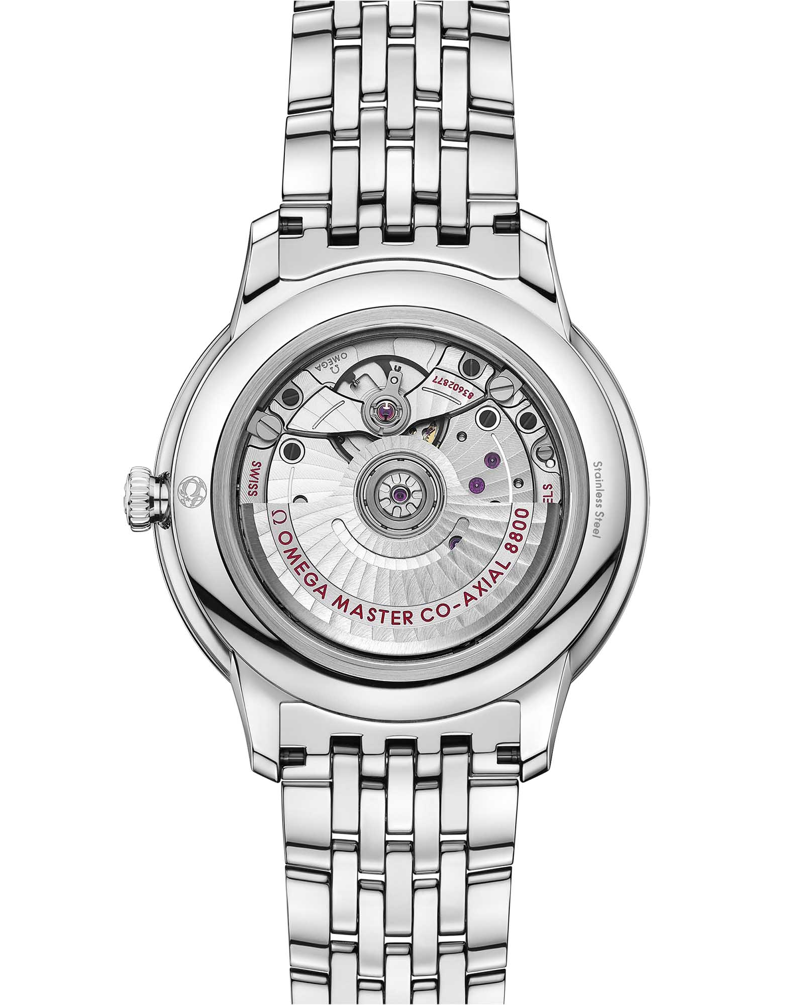 Третье воплощение легендарной коллекции OMEGA De Ville Prestige, бережно хранящей традиции с 1994 года, представляет собой гармонию вечной классики и современного мастерства. Эти часы, ставшие символом безупречного вкуса, предлагают богатую палитру дизайнерских решений с изысканными узорами и благородными оттенками, созданными для самых взыскательных ценителей. 40-миллиметровый корпус из нержавеющей стали обрамляет выпуклый циферблат с PVD-покрытиемPVDУльтратонкое покрытие наносится в технике вакуумного напыления, сочетает в себе нитрид титана особой прочности со слоем золота или оксида хрома. Несёт в себе декоративную или защитную функцию. глубокого черного цвета, украшенный изысканным радиальным сатинированием, где стрелки с PVD-покрытиемPVDУльтратонкое покрытие наносится в технике вакуумного напыления, сочетает в себе нитрид титана особой прочности со слоем золота или оксида хрома. Несёт в себе декоративную или защитную функцию. в благородных тонах золота Sedna™ гармонично сочетаются с чередующимися римскими цифрами и индексами-кабошонами. Лаконичный дизайн дополняют функциональные элементы: изящное окошко даты в положении «6 часов» и характерная минутная шкала в стиле «железная дорога» по краю циферблата. Обладая престижным сертификатом Master Chronometer, модель представлена с элегантным браслетом из нержавеющей стали, а в ее сердце бьется калибр OMEGA Master Co-Axial 8800, демонстрируемый через прочное сапфировое стеклоСапфировое стеклоПрочный и надёжный материал из кристалла сапфира синтетического происхождения, характеризующийся особой твёрдостью и устойчивостью к царапинам и повреждениям. задней крышки - истинное удовольствие для ценителей высокого часового искусства.