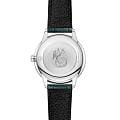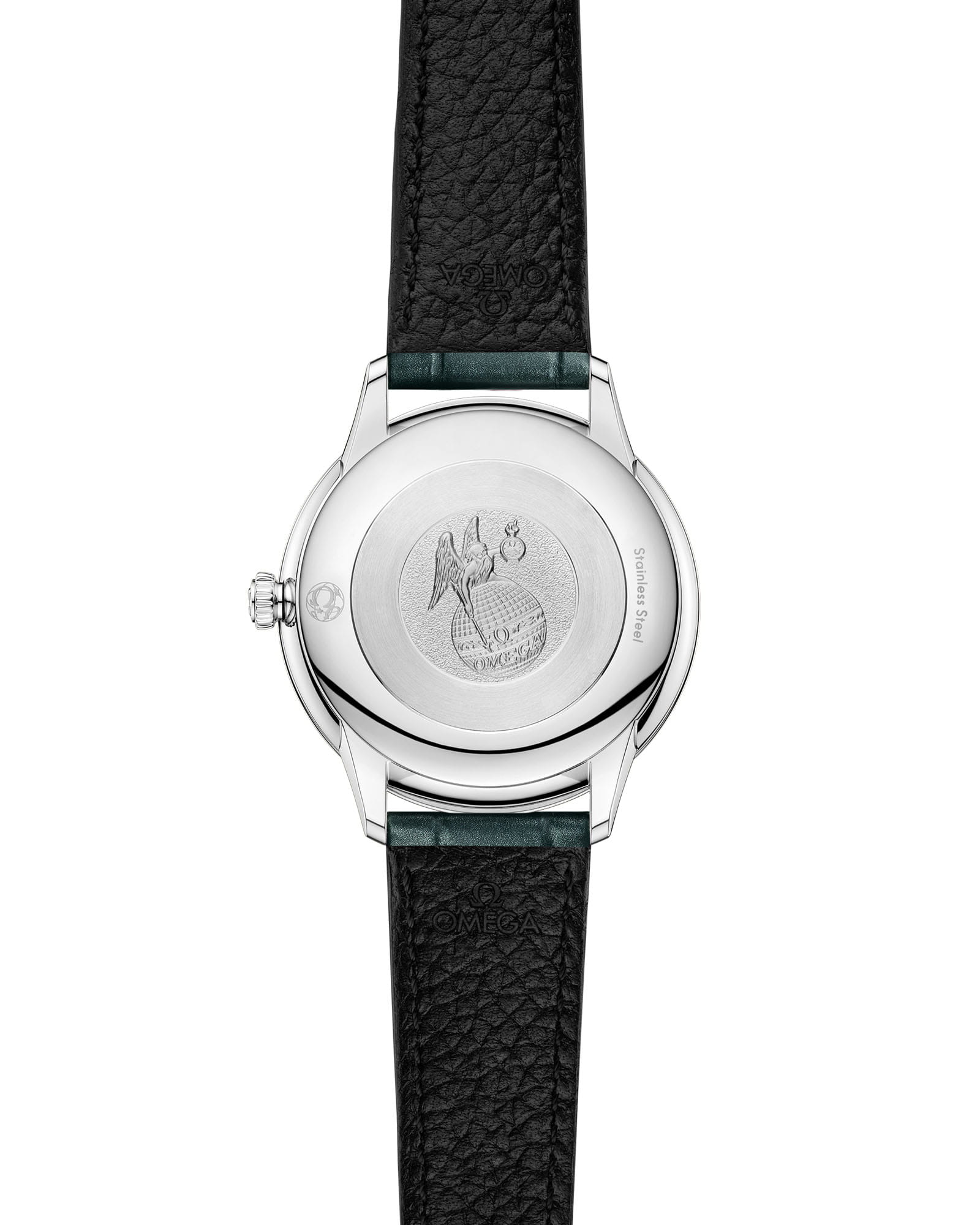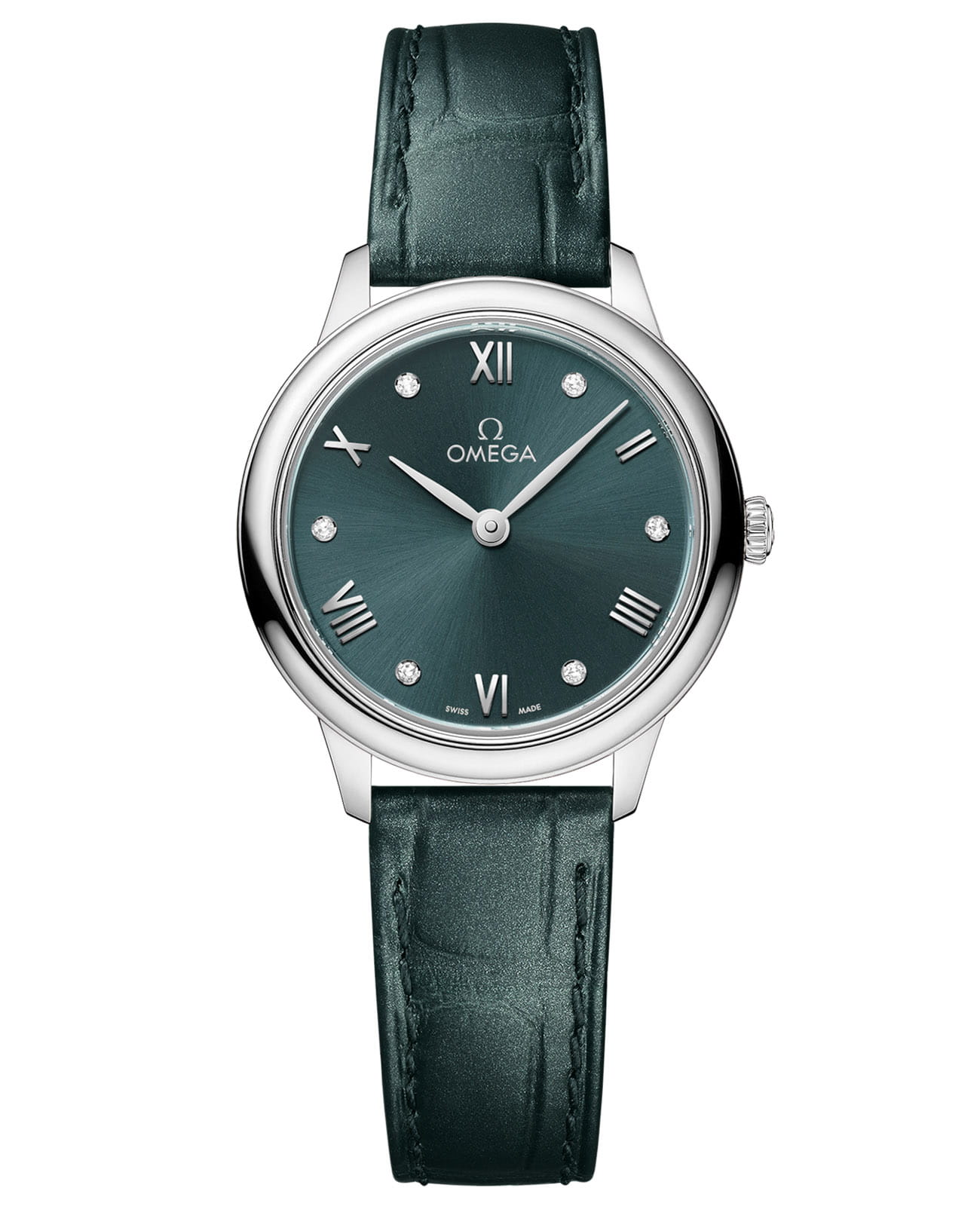 Коллекция OMEGA De Ville Prestige, сохраняющая свою актуальность с 1994 года, предстает в третьем поколении. Часы продолжают быть символом классического дизайна и утонченной элегантности. Модели, которые привлекают внимание разнообразием узоров, отделок и цветов, идеально подойдут для людей с различными стилями жизни и характерами. Часы в корпусе диаметром 27,5 мм из нержавеющей стали имеют циферблат с PVD-покрытиемPVDУльтратонкое покрытие наносится в технике вакуумного напыления, сочетает в себе нитрид титана особой прочности со слоем золота или оксида хрома. Несёт в себе декоративную или защитную функцию. оттенка зеленой сосны и радиальным сатинированием. На циферблате расположены стрелки с родиевым покрытием, а также чередующиеся римские цифры и метки из бриллиантов. Изделие с лаконичным дизайном дополнено задней крышкой, украшенной рельефным медальоном с изображением бога времени Хроноса. Часы представлены с переливающимся кожаным ремешком оттенка зеленой сосны. Модель оснащена кварцевым механизмом OMEGA 4061 со сроком службы элемента питания не менее 48 месяцев.