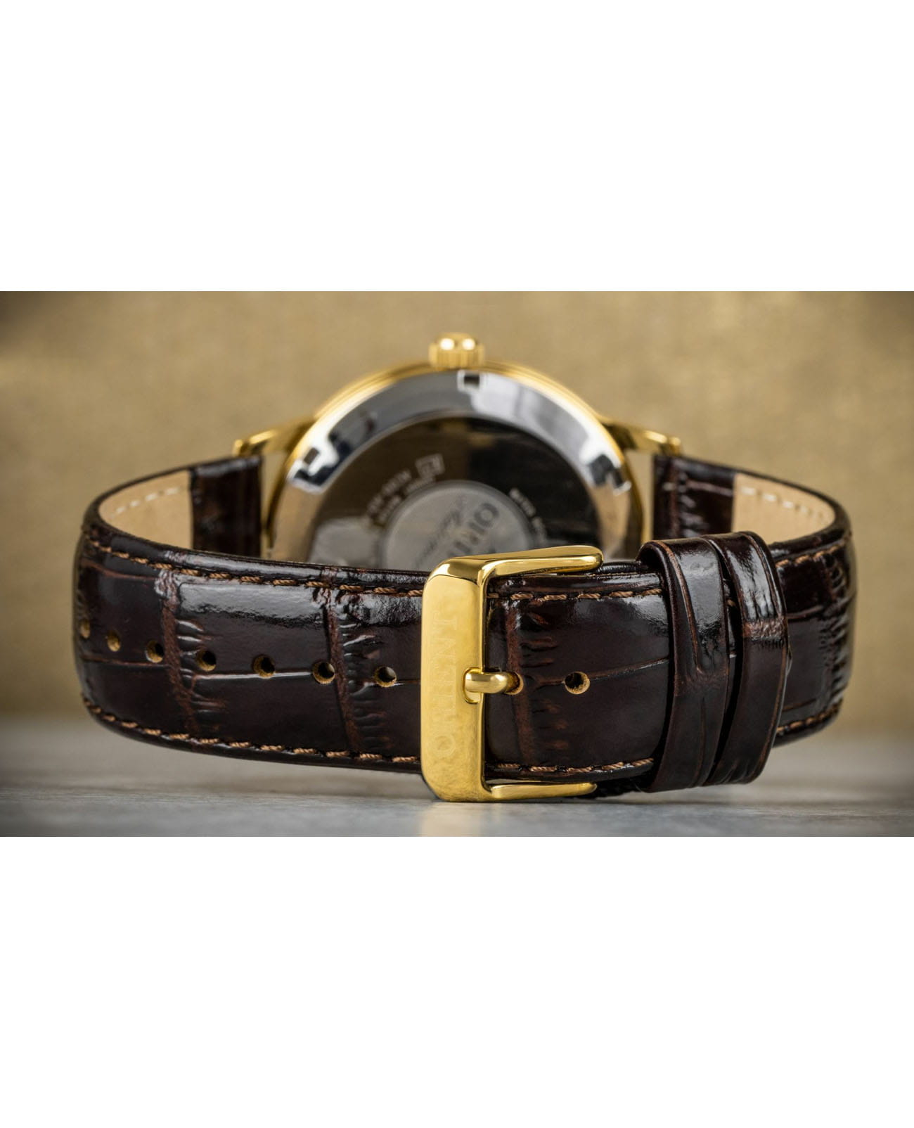 Мужские механические часы с автоподзаводом Orient Automatic FAC00003W (FAC00003W0). Минеральное стеклоМинеральное стеклоМинеральное стекло представляет собой искусственно выращенный минерал кварца. Такое стекло отличается особой устойчивостью к повреждениям и царапинам. Уступает по некоторым качествам сапфировому стеклу. устойчивое к появлению царапин, обладающее высокой прозрачностью. Корпус из нержавеющей стали с PVDPVDУльтратонкое покрытие наносится в технике вакуумного напыления, сочетает в себе нитрид титана особой прочности со слоем золота или оксида хрома. Несёт в себе декоративную или защитную функцию. покрытием. Окошко даты в положении 3 часов. Класс водозащиты: 30 метров, позволит защитить корпус от случайных брызг или капель дождя. Кожаный ремешок на стандартной застежке.