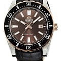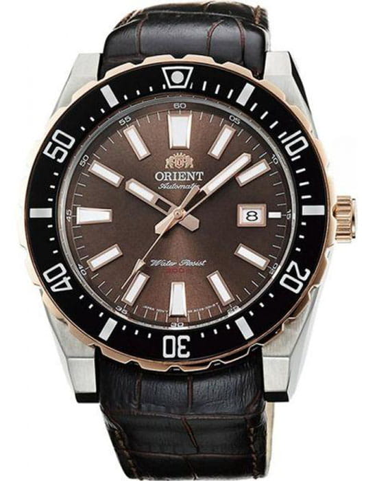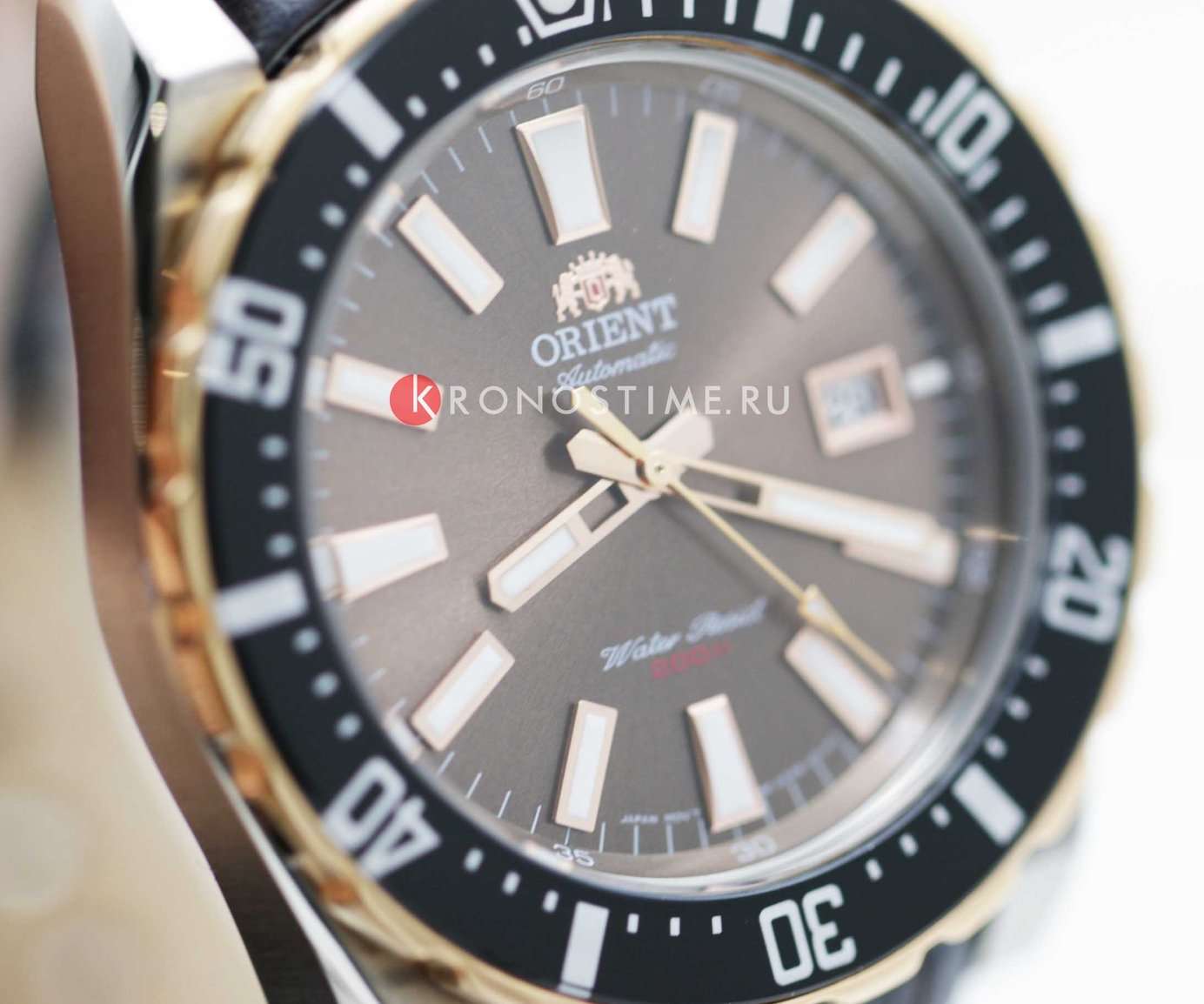 Orient AC09002T — это элегантные и надежные часы, созданные для тех, кто ценит стиль и функциональность. Корпус диаметром 46 мм выполнен из нержавеющей стали, что придаёт модели выразительный и современный вид. Вращающийся однонаправленный безельБезельВнешний ободок, закрепляющий стекло. В спортивных часах так называется поворотное кольцо с делениями на циферблате, выполняет роль таймера – замеряет отрезки времени на шкале. Неподвижный безель – элемент декора. Однонаправленно вращающийся безель на дайверских часах позволяет фиксировать моменты погружения и выныривания на поверхность. черного цвета позволяет точно отсчитывать время погружения, делая эти часы отличным выбором для активного образа жизни. Коричневый циферблат дополнен крупными стрелками и часовыми метками с люминесцентным покрытиемЛюминесцентное покрытиеПозволяет считывать показания времени в темноте. Производители наносят на стрелки, часовые индексы, безель или поверхность циферблата светонакопительный состав, дающий холодное свечение., что гарантирует превосходную читаемость даже в условиях низкой освещённости. Окошко даты удобно расположено на отметке «3 часа». Защитное минеральное стеклоМинеральное стеклоМинеральное стекло представляет собой искусственно выращенный минерал кварца. Такое стекло отличается особой устойчивостью к повреждениям и царапинам. Уступает по некоторым качествам сапфировому стеклу. обеспечивает дополнительную прочность и устойчивость к повреждениям. Часы оснащены автоматическим механизмом Orient калибра F6724 с функцией ручного подзавода и стоп-секундой, что повышает точность и удобство использования. Модель комплектуется стильным коричневым кожаным ремешком с классической застёжкой, который гармонично дополняет общий дизайн. Водонепроницаемость до 200 метров делает эти часы отличным выбором для водных видов спорта и повседневного ношения.