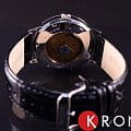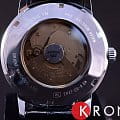 Лаконичный тёмный циферблат с серебристыми стрелками и индексами гармонично сочетается с чёрным ремешком из натуральной кожи, часы станут идеальным вариантом для делового мужчины. Механизм собственного производства заводится от движений руки владельца, позволяя забыть о необходимости постоянного завода. Минеральное стекло устойчиво к образованию царапин. Водостойкость 50 метров. Прозрачная задняя крышка корпуса. Апертура даты. Габариты: 41,2 x 41,2 x 12 мм.