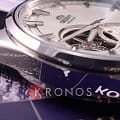 Сквозь прозрачное окошко на циферблате можно наблюдать за работой механизма часов, что добавляет часам дополнительную привлекательность. Секундная стрелка вынесена на отдельный циферблат, подчеркивая внимание к деталям и создавая гармоничный баланс между функциональностью и стилем.