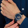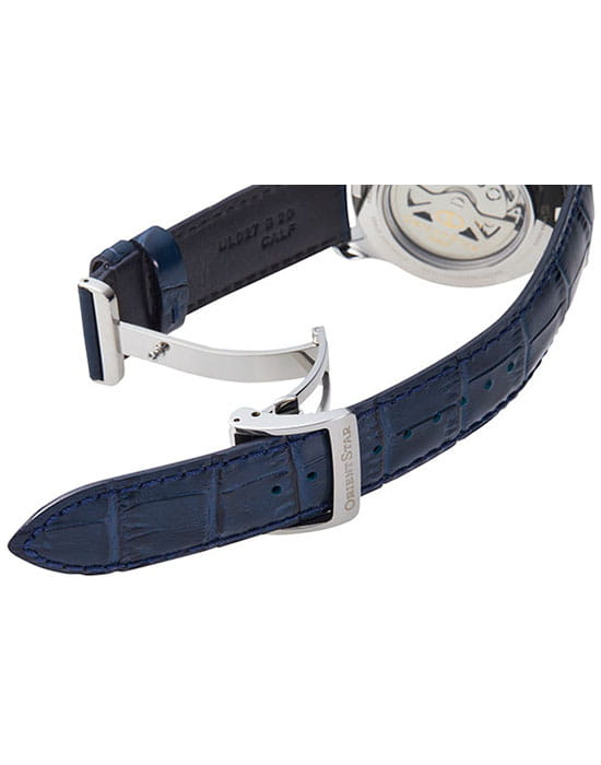 Кожаный ремешок с раскладной застежкойРаскладная застёжкаТакой тип застёжки используется только на браслетах из металла. Она никогда не раскрывается полностью, происходит разделение на 2 и более частей. Раскладывающая застёжка снизит вероятность потери часов к минимуму. завершает образ этих часов, добавляя комфорта и удобства при ношении.