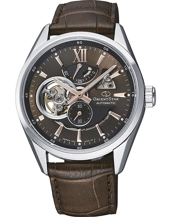 Часы Orient Star RE-AV0006Y из коллекции Contemporary — это элегантная модель, воплощающая высокое качество японского часового мастерства. Корпус диаметром 41 мм выполнен из нержавеющей стали и защищён сапфировым стекломСапфировое стеклоПрочный и надёжный материал из кристалла сапфира синтетического происхождения, характеризующийся особой твёрдостью и устойчивостью к царапинам и повреждениям., устойчивым к царапинам и обеспечивающим отличную читаемость циферблата. Коричневый циферблат украшен функцией открытого сердца, позволяющей наблюдать за работой механизма. На отметке «12 часов» расположен индикатор запаса хода, демонстрирующий оставшееся время работы механизма. Малая секундная стрелка на «6 часах» добавляет функциональности и точности. Автоматический механизм Orient Calibre F6F44 с возможностью ручного завода и функцией остановки секундной стрелки обеспечивает стабильность хода. Запас хода до 50 часов позволяет часам работать длительное время без подзавода. Коричневый кожаный ремешок с текстурой под крокодила оснащён застёжкой-бабочкойЗастёжка "бабочка"Такой вид застёжки дополняется предохранителями, помогающими избежать случайного раскрытия браслета. Обладают изящным исполнением. , что обеспечивает надёжную фиксацию и комфортное ношение. Водонепроницаемость до 100 метров делает часы идеальными для активного образа жизни и повседневного использования. Orient Star RE-AV0006Y00B — это безупречное сочетание стиля, функциональности и надёжности для настоящих ценителей часового искусства.
