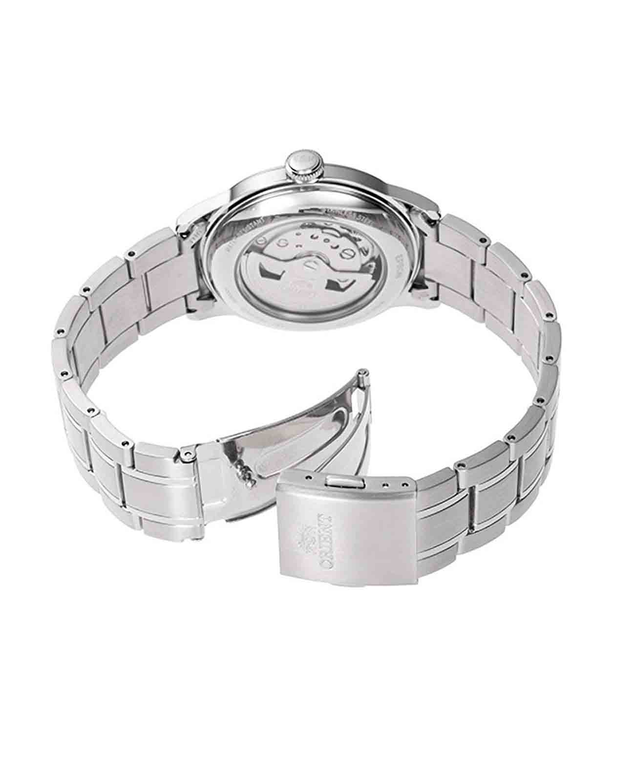 Браслет часов также выполнен из нержавеющей стали и оснащен удобной раскладной застежкойРаскладная застёжкаТакой тип застёжки используется только на браслетах из металла. Она никогда не раскрывается полностью, происходит разделение на 2 и более частей. Раскладывающая застёжка снизит вероятность потери часов к минимуму., обеспечивающей надежную фиксацию и комфорт при ношении. Эта модель станет прекрасным выбором для тех, кто предпочитает сочетать классический дизайн с современными технологиями и высоким качеством исполнения. Orient Automatic RA-AC0M11Y3 (RA-AC0M11Y30B) отлично подходят как для ежедневного использования, так и для более формальных ситуаций.