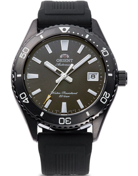 Orient RA‑AC0Q10N  — компактная автоматическая модель в серии дайверов Orient, сочетающая утилитарный характер и элегантный сдержанный дизайн. Корпус диаметром 39,9 мм и длиной от ушка до ушка 46,5 мм выполнен из нержавеющей стали с тёмным IP-покрытиемIP-покрытиеМетод ионного напыления. Демонстрирует повышенную устойчивость к истиранию, окислению и химическим веществам. Под воздействием высокого давления и температуры около 1500°C молекулы металла надёжно соединяются с частицами корпуса часов., придающим часам современный и строгий облик.