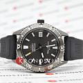 Циферблат тёмно-серого оттенка с эффектом солнечных лучей оформлен в классическом стиле коллекции: крупные стрелки и часовые метки с люминесцентным покрытиемЛюминесцентное покрытиеПозволяет считывать показания времени в темноте. Производители наносят на стрелки, часовые индексы, безель или поверхность циферблата светонакопительный состав, дающий холодное свечение. обеспечивают отличную читаемость в любое время суток. У отметки «3 часа» расположено окно даты. Вращающийся односторонний безельБезельВнешний ободок, закрепляющий стекло. В спортивных часах так называется поворотное кольцо с делениями на циферблате, выполняет роль таймера – замеряет отрезки времени на шкале. Неподвижный безель – элемент декора. Однонаправленно вращающийся безель на дайверских часах позволяет фиксировать моменты погружения и выныривания на поверхность. служит для отслеживания времени погружения или активностей.