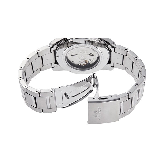 Браслет из нержавеющей стали с раскладной застёжкой обеспечивает комфортное ношение и надёжную фиксацию. Водонепроницаемость до 50 метров защищает часы от случайных брызг, делая их подходящими для повседневного использования.