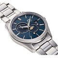 Глубокий синий циферблат с изящными деталями дополнен , отображающим смену дня и ночи. Также на циферблате представлены указатель дня недели и окошко даты, что подчёркивает практичность модели.