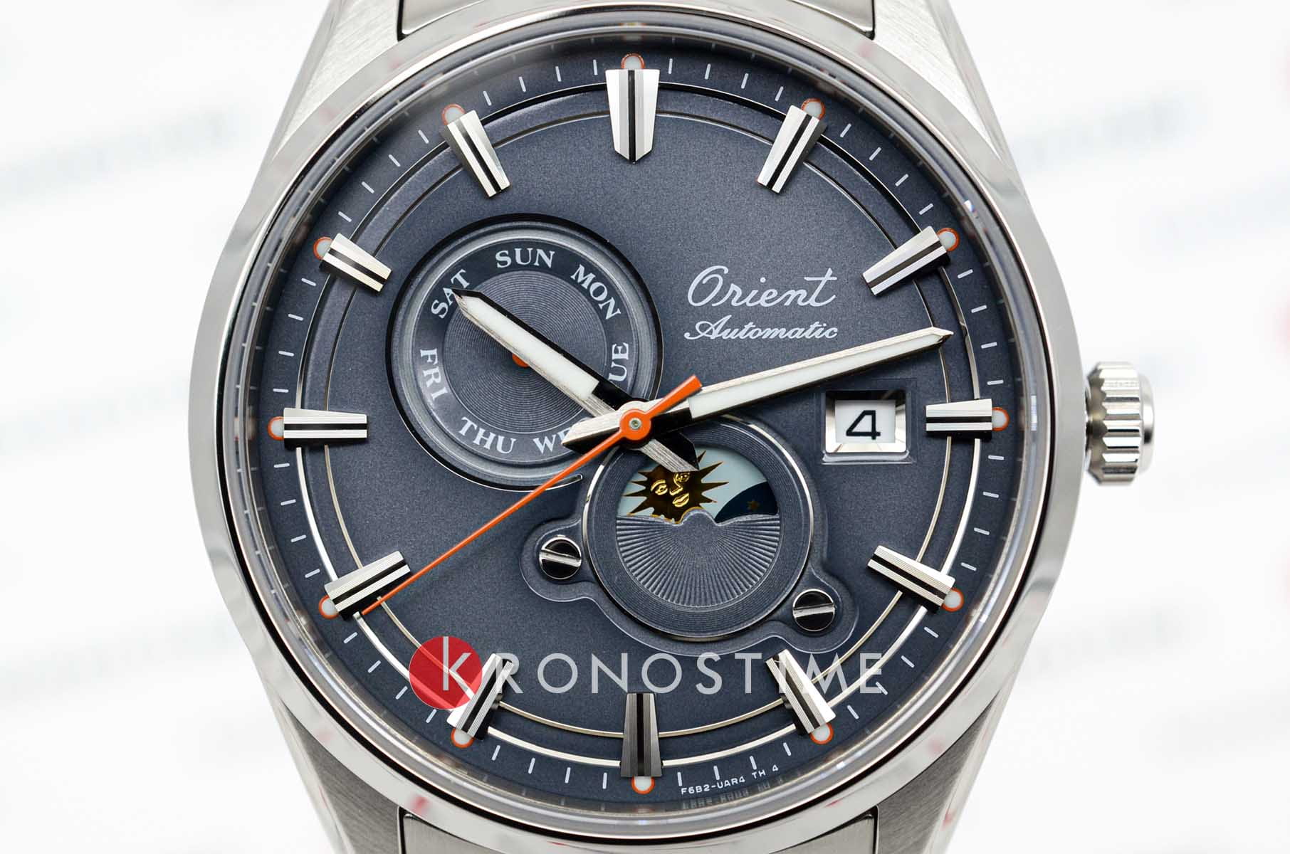 Часы Orient Sun & Moon RA-AK0311N — это изысканное сочетание элегантности и функциональности. Корпус из нержавеющей стали диаметром 41,5 мм защищён сапфировым стекломСапфировое стеклоПрочный и надёжный материал из кристалла сапфира синтетического происхождения, характеризующийся особой твёрдостью и устойчивостью к царапинам и повреждениям., которое обеспечивает долговечность и защиту от царапин. Глубокий серый циферблат с изящными деталями, отображающим смену дня и ночи. Также на циферблате представлены указатель дня недели и окошко даты, что подчёркивает практичность модели. Автоматический механизм Orient Calibre F6722 обеспечивает высокую точность и удобство настройки времени. Запас хода до 40 часов делает часы надёжным спутником в повседневной жизни. Элегантный браслет из нержавеющей стали оснащён раскладной застёжкойРаскладная застёжкаТакой тип застёжки используется только на браслетах из металла. Она никогда не раскрывается полностью, происходит разделение на 2 и более частей. Раскладывающая застёжка снизит вероятность потери часов к минимуму., обеспечивающей комфортное ношение и надёжную фиксацию на запястье. Водонепроницаемость до 50 метров защищает часы от случайных брызг, делая их подходящими для повседневного использования. Стрелки и метки с люминесцентным покрытиемЛюминесцентное покрытиеПозволяет считывать показания времени в темноте. Производители наносят на стрелки, часовые индексы, безель или поверхность циферблата светонакопительный состав, дающий холодное свечение. позволяющие легко определять время даже в темноте. Orient Sun & Moon RA-AK0311N — это выбор для тех, кто ценит стиль, качество и универсальность. Лимитированная серия.