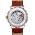 Часы Orient RA-AK0801S из коллекции Sun & Moon — элегантная модель с классическим дизайном и продуманной функциональностью. Корпус диаметром 41,5 мм выполнен из нержавеющей стали с изысканным PVD-покрытиемPVDУльтратонкое покрытие наносится в технике вакуумного напыления, сочетает в себе нитрид титана особой прочности со слоем золота или оксида хрома. Несёт в себе декоративную или защитную функцию. розового золота, а выпуклое минеральное стеклоМинеральное стеклоМинеральное стекло представляет собой искусственно выращенный минерал кварца. Такое стекло отличается особой устойчивостью к повреждениям и царапинам. Уступает по некоторым качествам сапфировому стеклу. защищает циферблат от царапин. Белый циферблат украшен римскими цифрами и стрелками в тон корпуса. На «10 часах» расположен индикатор дня недели, а на «4 часах» — индикатор смены дня и ночи «Солнце и Луна». Окошко даты на «3 часах» добавляет практичности и завершает функционал. Автоматический механизм Orient Calibre F6B24 поддерживает ручной завод и функцию остановки секундной стрелки. Запас хода до 40 часов гарантирует надёжную работу в течение длительного времени. Коричневый кожаный ремешок с текстурой под крокодила и стандартной застежке, обеспечивает комфортное ношение и надёжную фиксацию. Водонепроницаемость до 30 метров защищает часы от случайных брызг. Orient RA-AK0801S — это идеальный выбор для тех, кто ценит японское качество, элегантный стиль и функциональность.