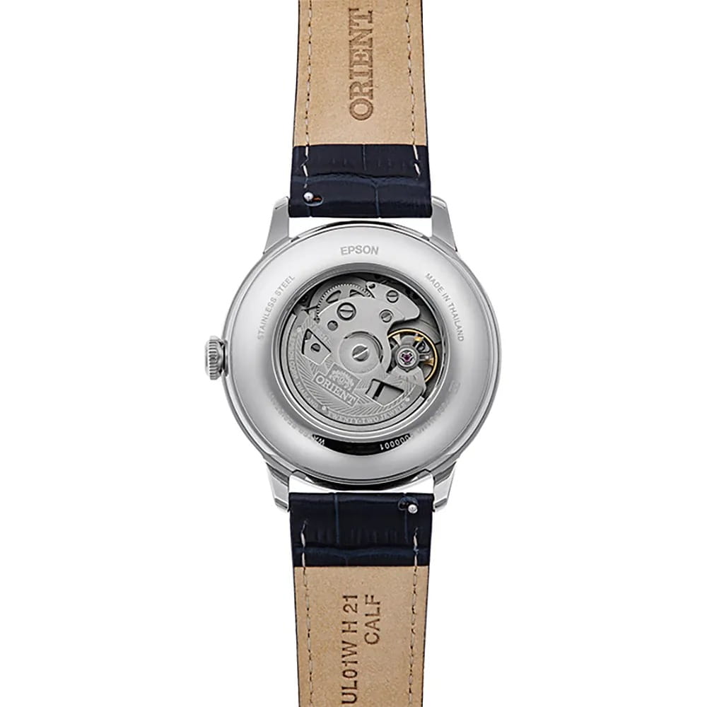 Оригинальные механические часы Orient Bambino RA-AK0806L представляют собой элегантное сочетание классического дизайна и современных технологий. Корпус диаметром 41,5 мм изготовлен из нержавеющей стали, что обеспечивает долговечность и привлекательный внешний вид. Циферблат синего цвета оснащён функцией день/ночь, которая отображает фазы Луны и время суток, добавляя уникальный шарм модели. Часы также оснащены функцией отображения даты в районе 3 часа, от отдельным циферблатом с днями недели, добавляя практичности к своему классическому дизайну. Часы защищены минеральным стекломМинеральное стеклоМинеральное стекло представляет собой искусственно выращенный минерал кварца. Такое стекло отличается особой устойчивостью к повреждениям и царапинам. Уступает по некоторым качествам сапфировому стеклу., обеспечивающим устойчивость к царапинам и надёжную защиту циферблата. Водозащита WR 30 (3 ATM) делает эти часы практичным выбором для повседневного использования. Дополняет образ синий кожаный ремешок, который не только стильный, но и комфортный для длительного ношения. Вес часов составляет всего 70 грамм, что делает их лёгкими и удобными для использования каждый день. Orient Bambino RA-AK0806L — это выбор тех, кто ценит точность, качество и уникальный дизайн в одном аксессуаре. Эти часы станут прекрасным дополнением как к повседневной, так и к формальной одежде, подчеркивая ваш стиль и индивидуальность.