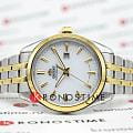 Orient RA-WG0601S — женская кварцевая модель из коллекции Contemporary с элегантным и сдержанным дизайном. Корпус диаметром 32,1 мм выполнен из нержавеющей стали с золотистым PVDPVDУльтратонкое покрытие наносится в технике вакуумного напыления, сочетает в себе нитрид титана особой прочности со слоем золота или оксида хрома. Несёт в себе декоративную или защитную функцию.-покрытием на безелеБезельВнешний ободок, закрепляющий стекло. В спортивных часах так называется поворотное кольцо с делениями на циферблате, выполняет роль таймера – замеряет отрезки времени на шкале. Неподвижный безель – элемент декора. Однонаправленно вращающийся безель на дайверских часах позволяет фиксировать моменты погружения и выныривания на поверхность., создающим изысканный акцент. Белый циферблат украшен тонкими метками и стрелками, обеспечивающими лёгкую читаемость, а апертура даты расположена в позиции «3 часа». Защитную функцию выполняет минеральное стеклоМинеральное стеклоМинеральное стекло представляет собой искусственно выращенный минерал кварца. Такое стекло отличается особой устойчивостью к повреждениям и царапинам. Уступает по некоторым качествам сапфировому стеклу., стойкое к повседневным повреждениям. Часы работают на точном кварцевом механизме на солнечной энергии, не требующем подзавода. Водозащита составляет 5 бар (50 м), что защищает модель от брызг и дождя. Браслет из нержавеющей стали с PVDPVDУльтратонкое покрытие наносится в технике вакуумного напыления, сочетает в себе нитрид титана особой прочности со слоем золота или оксида хрома. Несёт в себе декоративную или защитную функцию.-покрытием гармонично завершает образ, подчеркивая классический стиль и универсальность этих часов.