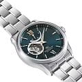 Мужские изысканные часы Orient Contemporary Semi-Skeleton RE-AT0003E — это стильное сочетание современного дизайна и часового мастерства. Корпус из нержавеющей стали с диаметром 39.3 мм защищён сапфировым стекломСапфировое стеклоПрочный и надёжный материал из кристалла сапфира синтетического происхождения, характеризующийся особой твёрдостью и устойчивостью к царапинам и повреждениям. с антибликовым покрытиемАнтибликовое покрытиеСлой оксида металла в 0,13-0,3 микрон, благодаря которому стекло часов не бликует и не отражает свет. Антибликовое покрытие уменьшает отражение света в 10 раз, обеспечивая отличную читаемость показателей циферблата., что обеспечивает отличную видимость и защиту от царапин. Особенностью этой модели является прозрачное окошко на циферблате, через которое можно наблюдать за работой сложного внутреннего механизма. Элегантные часы оснащены калибром F6R42. Элегантный браслет из нержавеющей стали с оснащён раскладной застёжкойРаскладная застёжкаТакой тип застёжки используется только на браслетах из металла. Она никогда не раскрывается полностью, происходит разделение на 2 и более частей. Раскладывающая застёжка снизит вероятность потери часов к минимуму., что обеспечивает удобство и надёжность. Эта изысканная модель имеет люминесцентное покрытиеЛюминесцентное покрытиеПозволяет считывать показания времени в темноте. Производители наносят на стрелки, часовые индексы, безель или поверхность циферблата светонакопительный состав, дающий холодное свечение. на стрелках и метках для отличной читаемости в темноте. Водозащита до 10 ATM позволяет использовать часы не только в повседневной жизни, но и при активности на воде. Orient Contemporary Semi-skeleton RE-AT0003E — это выбор для тех, кто ценит утончённость, стиль и высочайшее качество.
