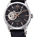 Прозрачная задняя крышка предоставляет возможность наблюдать за работой механизма, а открытый баланс хода добавляет часы динамичность и визуальный интерес. Циферблат выполнен по технологии Sunray, имитирующей солнечные лучи, исходящие от центра. Часовые метки выполнены в виде штрихов и двух римских цифр, подчеркивая строгий и стильный дизайн. Стрелки покрыты люминесцентным составомЛюминесцентное покрытиеПозволяет считывать показания времени в темноте. Производители наносят на стрелки, часовые индексы, безель или поверхность циферблата светонакопительный состав, дающий холодное свечение., облегчающим чтение времени в условиях низкой освещённости.