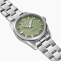 Оригинальные механические часы Orient Star Contemporary RE-AU0107E представляют собой идеальное сочетание классического дизайна и современных технологий. Корпус диаметром 38,5 мм выполнен из нержавеющей стали, что обеспечивает долговечность и презентабельный внешний вид. Циферблат зелёного цвета украшен индексами и римскими цифрами, а также серыми стрелками для контраста, что делает время всегда читаемым. Защиту циферблата обеспечивает сапфировое стеклоСапфировое стеклоПрочный и надёжный материал из кристалла сапфира синтетического происхождения, характеризующийся особой твёрдостью и устойчивостью к царапинам и повреждениям., которое устойчиво к царапинам и обеспечивает четкость изображения. Часы также оснащены функцией отображения даты в районе 3 часа, и отдельной шкалой с запасом хода до 50 часов, добавляя практичности к своему классическому дизайну. Водозащита 100 метров делает часы практичными для повседневного использования, включая активности в воде. Дополняет образ металлический браслет, закрывающийся на надёжную раскладную застёжкуРаскладная застёжкаТакой тип застёжки используется только на браслетах из металла. Она никогда не раскрывается полностью, происходит разделение на 2 и более частей. Раскладывающая застёжка снизит вероятность потери часов к минимуму., что добавляет комфорта при ношении. Вес часов составляет около 120 грамм, что делает их удобными для длительного использования. RE-AU0107E — это выбор тех, кто ценит точность, качество и элегантный дизайн в одном аксессуаре. Эти часы станут прекрасным дополнением как к повседневной, так и к формальной одежде, подчеркивая ваш стиль и индивидуальность.