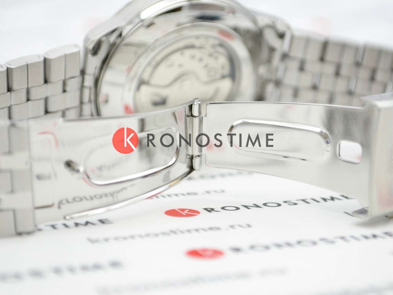 Браслет из нержавеющей стали оснащён раскладной застёжкойРаскладная застёжкаТакой тип застёжки используется только на браслетах из металла. Она никогда не раскрывается полностью, происходит разделение на 2 и более частей. Раскладывающая застёжка снизит вероятность потери часов к минимуму., обеспечивающей комфортное ношение и надёжную фиксацию на запястье.