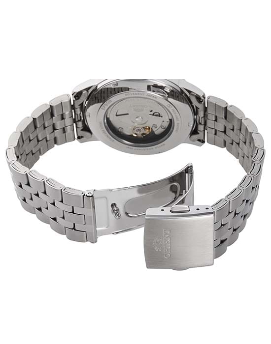 Часы оснащены автоматическим механизмом Orient с калибром F6722, поддерживающим как автоподзавод, так и ручной завод, а также функцией остановки секундной стрелки для точной настройки времени. Функциональность включает индикацию часов, минут, секунд и даты, расположенной в окне на отметке «3 часа».
