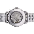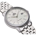 Orient RA-AC0F02S – элегантные механические часы, сочетающие классический дизайн и современные технологии. Корпус диаметром 41,6 мм выполнен из нержавеющей стали, обеспечивая долговечность и стильный внешний вид. Серебристый циферблат с лаконичными метками и стрелками защищён сапфировым стекломСапфировое стеклоПрочный и надёжный материал из кристалла сапфира синтетического происхождения, характеризующийся особой твёрдостью и устойчивостью к царапинам и повреждениям., устойчивым к царапинам.