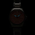 Многокомпонентный корпус из титана. Сапфировое стеклоСапфировое стеклоПрочный и надёжный материал из кристалла сапфира синтетического происхождения, характеризующийся особой твёрдостью и устойчивостью к царапинам и повреждениям., выпуклое с обеих сторон, внутреннее антибликовое покрытие. Нержавеющая сталь, завинчивающаяся прозрачная задняя крышка из минерального стеклаМинеральное стеклоМинеральное стекло представляет собой искусственно выращенный минерал кварца. Такое стекло отличается особой устойчивостью к повреждениям и царапинам. Уступает по некоторым качествам сапфировому стеклу.. Стрелки с люминесцентным покрытиемЛюминесцентное покрытиеПозволяет считывать показания времени в темноте. Производители наносят на стрелки, часовые индексы, безель или поверхность циферблата светонакопительный состав, дающий холодное свечение..