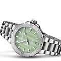Зеленые дайверские часы Aquis Date цвета морской волны отличаются контрастным циферблатом. Выполненный из перламутра, он переливается, как вода на закате, придавая элегантность высокопроизводительным часам. Эти часы со знакомым коническим силуэтом являются отличительным элементом коллекции Aquis.