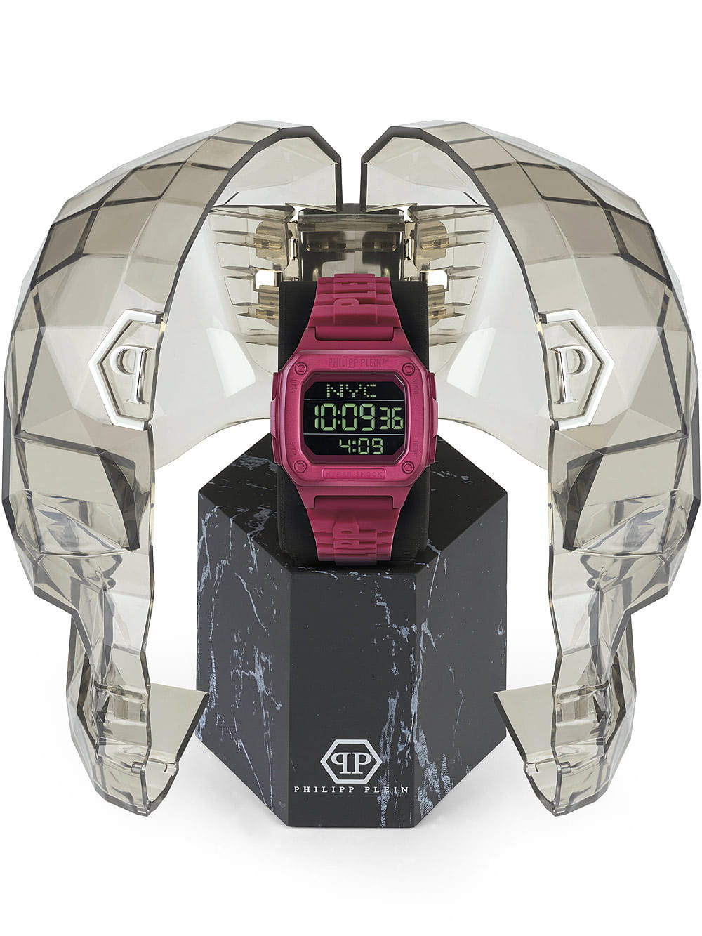 Электронные унисекс часы-хронографХронографФункция позволяет измерять отрезки времени с особой точностью: часы, минуты, секунды. Верным признаком хронографа является наличие на циферблате 3 дополнительных окошек-счётчиков. Philipp Plein Hyper Shock PWHAA0121, электронный механизм с высокой точностью. Класс водозащиты: 50 метров, позволит защитить корпус от случайных брызг или капель дождя. Прямоугольный корпус выполнен из нержавеющей стали с IP-покрытиемIP-покрытиеМетод ионного напыления. Демонстрирует повышенную устойчивость к истиранию, окислению и химическим веществам. Под воздействием высокого давления и температуры около 1500°C молекулы металла надёжно соединяются с частицами корпуса часов. розового цвета. Силиконовый ремешок шириной 22 мм, со стандартной застежкой.