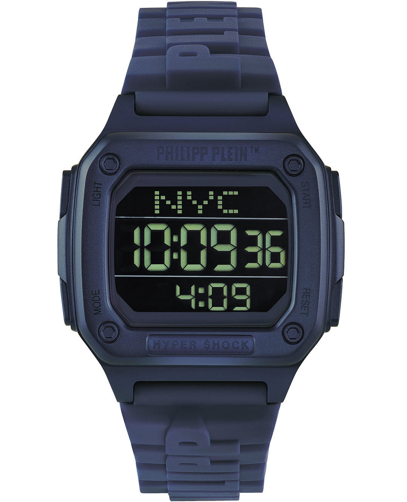 Электронные унисекс часы-хронографХронографФункция позволяет измерять отрезки времени с особой точностью: часы, минуты, секунды. Верным признаком хронографа является наличие на циферблате 3 дополнительных окошек-счётчиков. Philipp Plein Hyper Shock PWHAA0321, электронный механизм с высокой точностью. Класс водозащиты: 50 метров, позволит защитить корпус от случайных брызг или капель дождя. Прямоугольный корпус выполнен из нержавеющей стали с IP-покрытиемIP-покрытиеМетод ионного напыления. Демонстрирует повышенную устойчивость к истиранию, окислению и химическим веществам. Под воздействием высокого давления и температуры около 1500°C молекулы металла надёжно соединяются с частицами корпуса часов. синего цвета. Силиконовый ремешок шириной 22 мм, со стандартной застежкой.