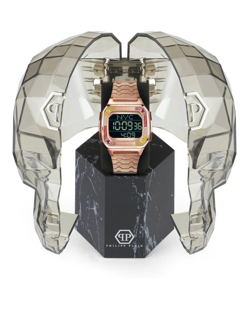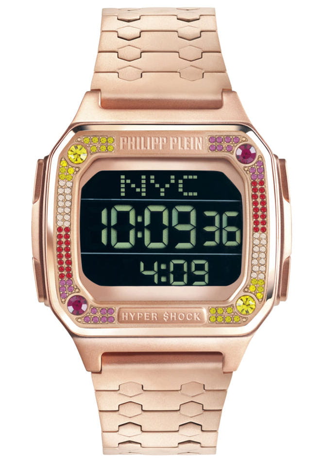 Электронные унисекс часы ХронографХронографФункция позволяет измерять отрезки времени с особой точностью: часы, минуты, секунды. Верным признаком хронографа является наличие на циферблате 3 дополнительных окошек-счётчиков. Philipp Plein Hyper Shock PWHAA0821, электронный механизм с высокой точностью. Класс водозащиты: 50 метров, позволит защитить корпус от случайных брызг или капель дождя. Прямоугольный корпус выполнен из нержавеющей стали с IP-покрытиемIP-покрытиеМетод ионного напыления. Демонстрирует повышенную устойчивость к истиранию, окислению и химическим веществам. Под воздействием высокого давления и температуры около 1500°C молекулы металла надёжно соединяются с частицами корпуса часов. цвета розового золота. Браслет из нержавеющей стали шириной 22 мм, застёжка «бабочка» с кнопкамиЗастёжка "бабочка"Такой вид застёжки дополняется предохранителями, помогающими избежать случайного раскрытия браслета. Обладают изящным исполнением. .
