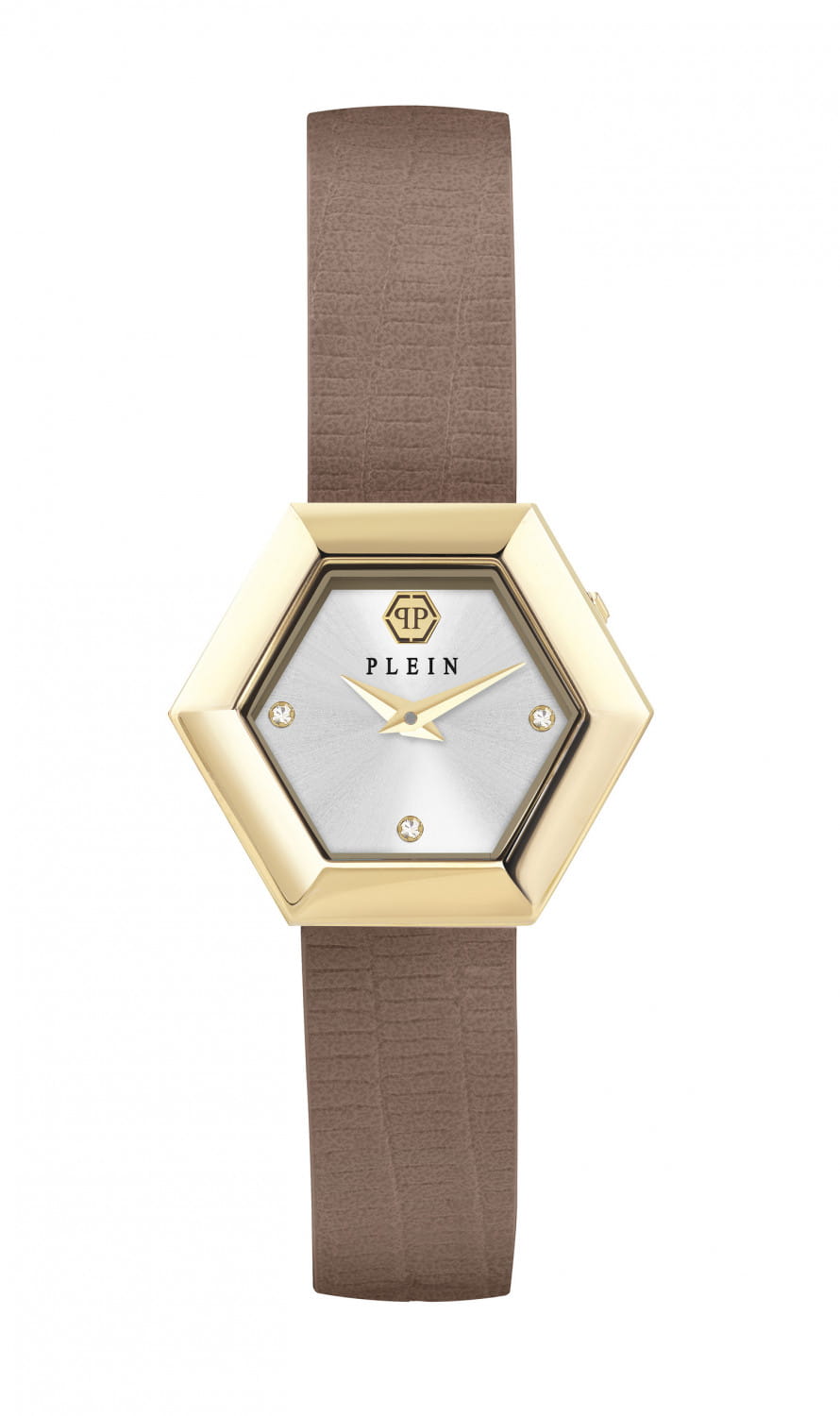 Женские кварцевые часы Philipp Plein La Jungle De Plein PW6FA0325_SET— это стильное сочетание элегантности и современного дизайна. Изящный корпус выполнен из нержавеющей стали с PVD-покрытиемPVDУльтратонкое покрытие наносится в технике вакуумного напыления, сочетает в себе нитрид титана особой прочности со слоем золота или оксида хрома. Несёт в себе декоративную или защитную функцию. золотистого цвета, диаметром 28 мм, что придаст образу женственности и романтизма. Изысканный циферблат с метками в виде точек украшены кристаллами придает модели особый блеск. Циферблат защищен минеральным стекломМинеральное стеклоМинеральное стекло представляет собой искусственно выращенный минерал кварца. Такое стекло отличается особой устойчивостью к повреждениям и царапинам. Уступает по некоторым качествам сапфировому стеклу., обеспечивающий устойчивость к царапинам. Часы оснащены надежным кварцевым механизмом. Кожаный ремешок на стандартной застёжке, гарантирует комфортное и безопасное ношение. Класс водозащиты: 50 метров позволит защитить корпус от случайных брызг или капель дождя. Phlipp Plein — отличный выбор для тех, кто ценит яркость и качество. В комплекте доп. ремешок из искусственной кожи.