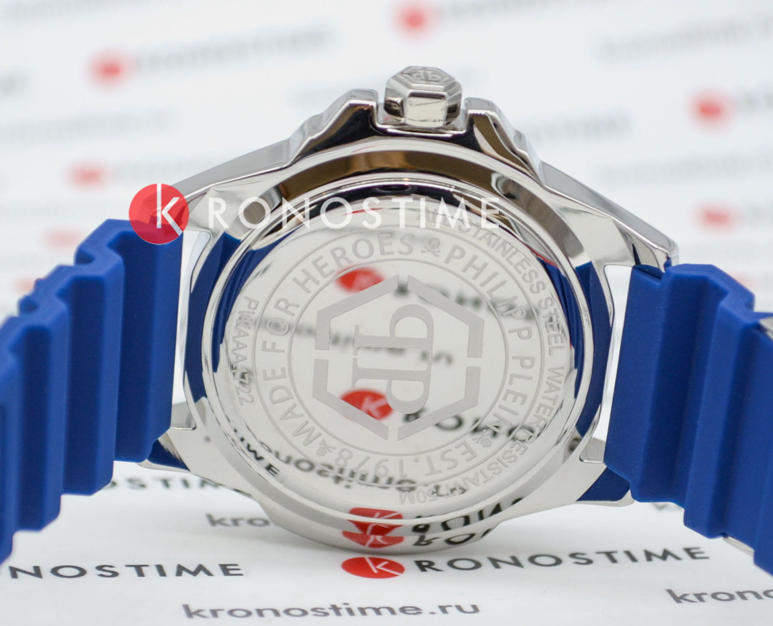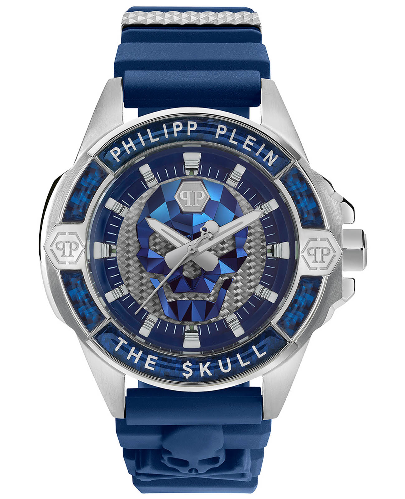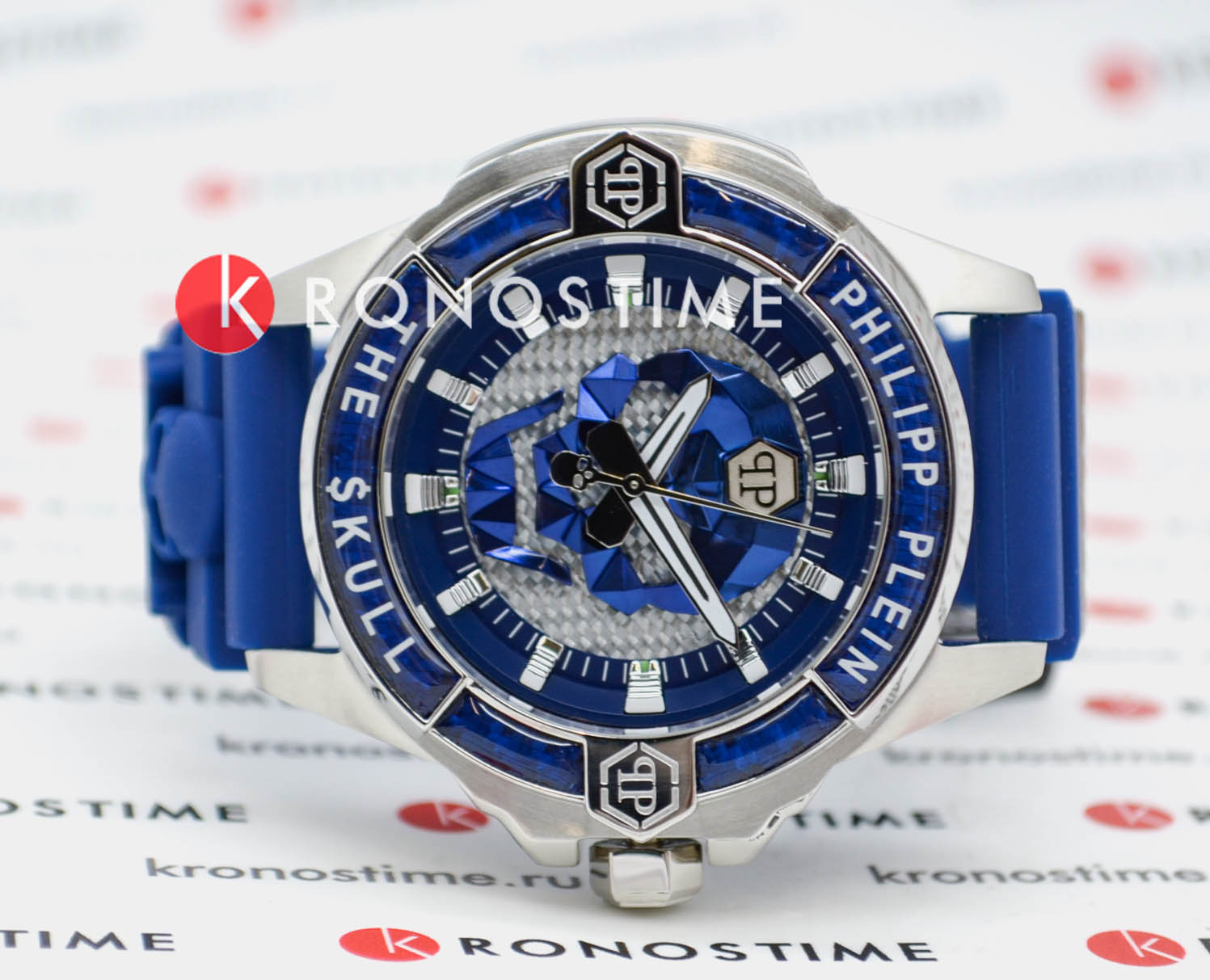 Мужские кварцевые часы с синим карбоновым покрытием циферблата Philipp Plein The Skull Carbon Fiber PWAAA1722, кварцевый механизм с высокой точностью. Класс водозащиты: 50 метров, позволит защитить корпус от случайных брызг или капель дождя. Круглый корпус выполнен из нержавеющей стали. Заводная головка с защитой. Синий силиконовый ремешок шириной 22 мм, стандартная застежка.