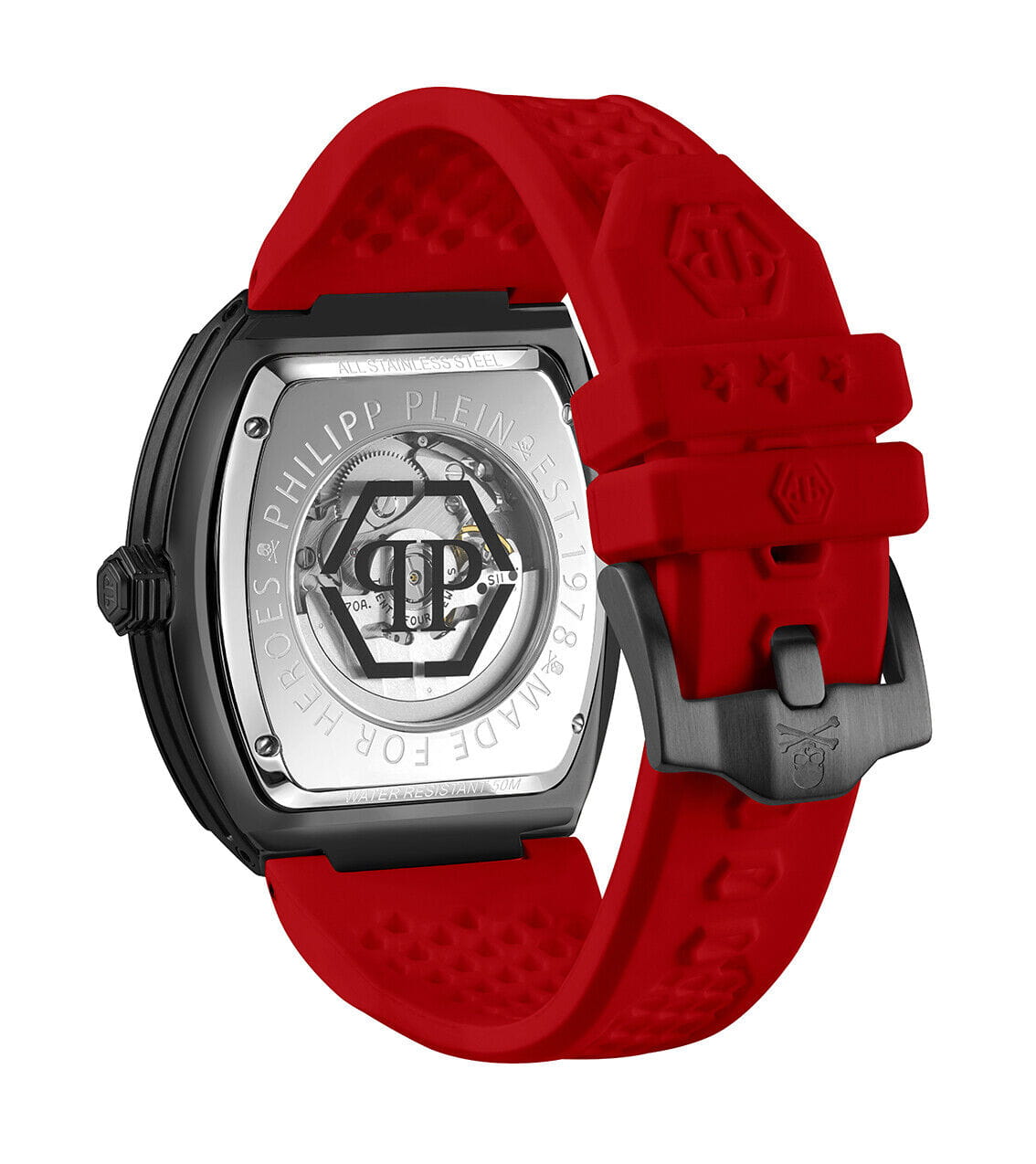 Механические мужские часы-скелетоны с минеральным стекломМинеральное стеклоМинеральное стекло представляет собой искусственно выращенный минерал кварца. Такое стекло отличается особой устойчивостью к повреждениям и царапинам. Уступает по некоторым качествам сапфировому стеклу. Philipp Plein The Skeleton Sport Master PWBAA0722, кварцевый механизм с высокой точностью. Класс водозащиты: 50 метров, позволит защитить корпус от случайных брызг или капель дождя. Корпус часов изготовлен из стали с IP-покрытиемIP-покрытиеМетод ионного напыления. Демонстрирует повышенную устойчивость к истиранию, окислению и химическим веществам. Под воздействием высокого давления и температуры около 1500°C молекулы металла надёжно соединяются с частицами корпуса часов.. Силиконовый ремешок на стандартной застёжке. Высококачественный силиконовый браслет обеспечивает высокий уровень комфорта. Стрелки и метки с люминесцентным покрытиемЛюминесцентное покрытиеПозволяет считывать показания времени в темноте. Производители наносят на стрелки, часовые индексы, безель или поверхность циферблата светонакопительный состав, дающий холодное свечение..