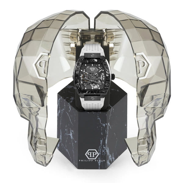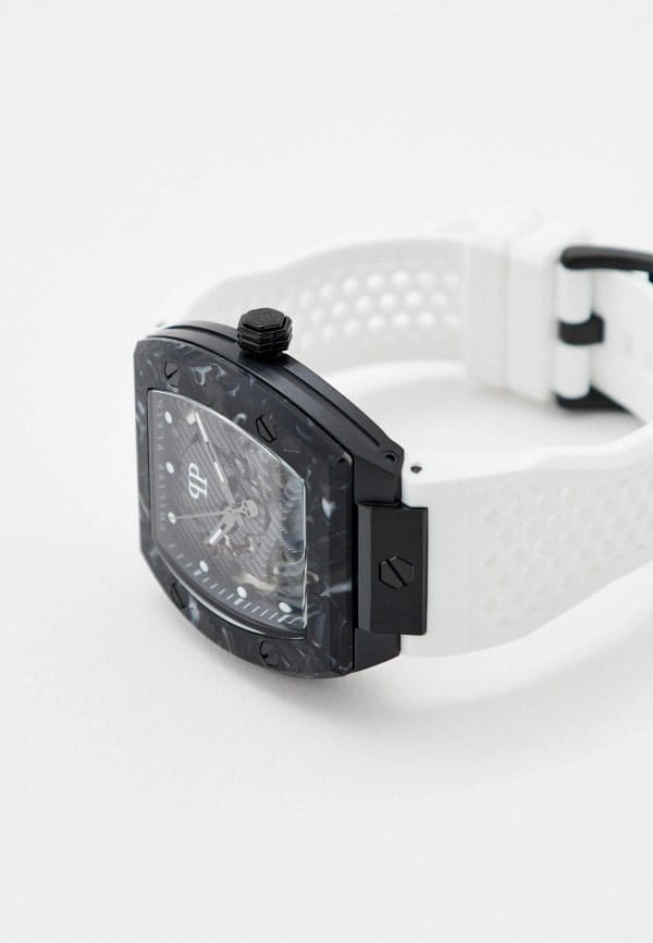 Механические мужские часы-скелетоны с минеральным стекломМинеральное стеклоМинеральное стекло представляет собой искусственно выращенный минерал кварца. Такое стекло отличается особой устойчивостью к повреждениям и царапинам. Уступает по некоторым качествам сапфировому стеклу. Philipp Plein The Skeleton Sport Master PWBAA1122, кварцевый механизм с высокой точностью. Класс водозащиты: 50 метров, позволит защитить корпус от случайных брызг или капель дождя. Корпус часов изготовлен из стали с IP-покрытиемIP-покрытиеМетод ионного напыления. Демонстрирует повышенную устойчивость к истиранию, окислению и химическим веществам. Под воздействием высокого давления и температуры около 1500°C молекулы металла надёжно соединяются с частицами корпуса часов.. Силиконовый ремешок на стандартной застёжке. Высококачественный силиконовый браслет обеспечивает высокий уровень комфорта. Стрелки и метки с люминесцентным покрытиемЛюминесцентное покрытиеПозволяет считывать показания времени в темноте. Производители наносят на стрелки, часовые индексы, безель или поверхность циферблата светонакопительный состав, дающий холодное свечение..