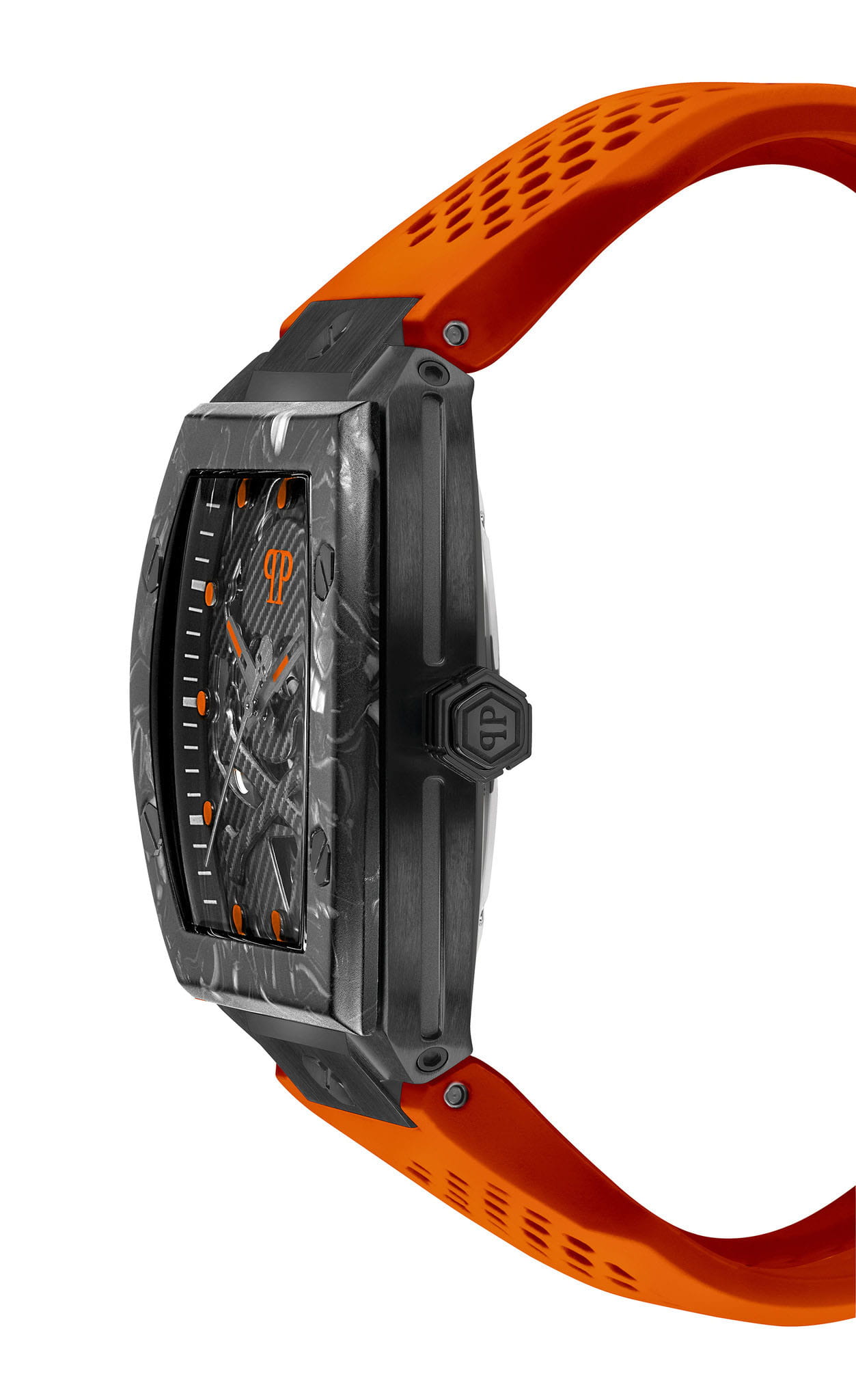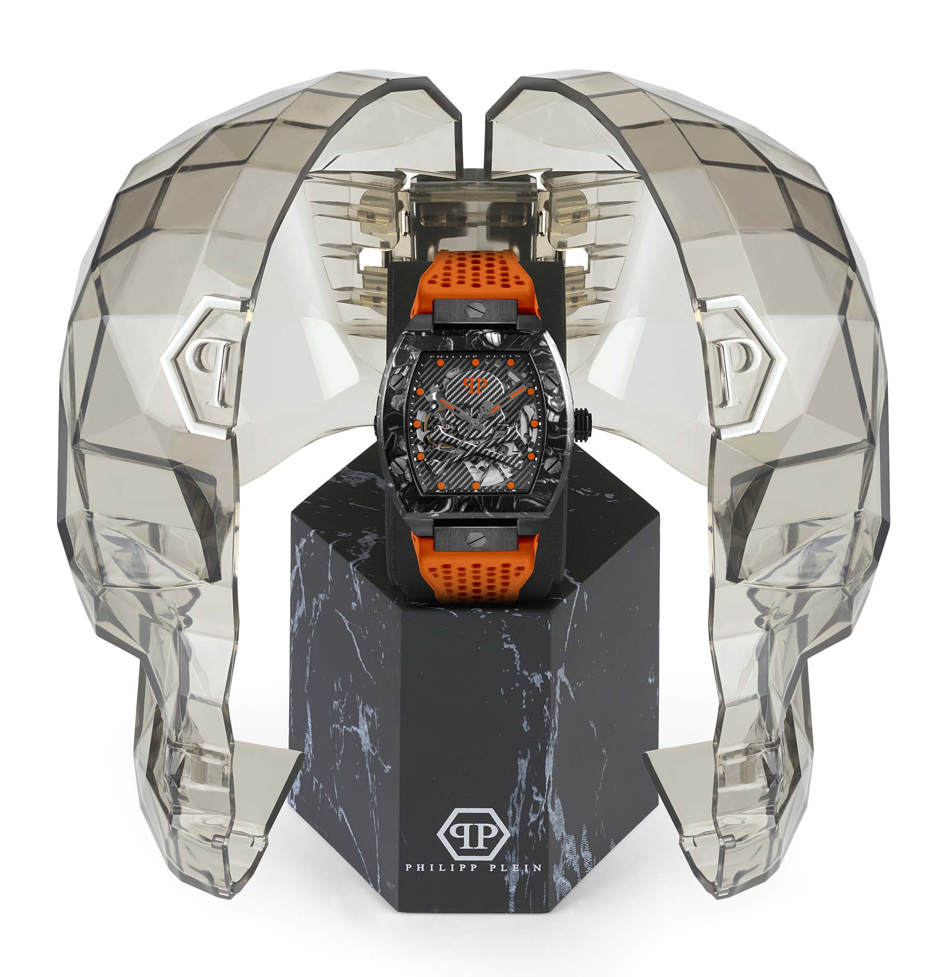 Яркие мужские часы с минеральным стекломМинеральное стеклоМинеральное стекло представляет собой искусственно выращенный минерал кварца. Такое стекло отличается особой устойчивостью к повреждениям и царапинам. Уступает по некоторым качествам сапфировому стеклу. Philipp Plein The SkeletonPWBAA1222, кварцевый механизм с высокой точностью. Класс водозащиты: 50 метров, позволит защитить корпус от случайных брызг или капель дождя. Корпус часов изготовлен из стали с IP-покрытиемIP-покрытиеМетод ионного напыления. Демонстрирует повышенную устойчивость к истиранию, окислению и химическим веществам. Под воздействием высокого давления и температуры около 1500°C молекулы металла надёжно соединяются с частицами корпуса часов..