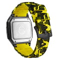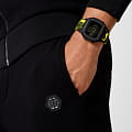 Электронные унисекс часы с секундомеромСекундомерСекундоме́р — прибор, способный измерять интервалы времени с точностью до долей секунды. Philipp Plein Hyper Shock PWHAA1722, электронный механизм с высокой точностью. Класс водозащиты: 50 метров, позволит защитить корпус от случайных брызг или капель дождя. Прямоугольный корпус выполнен из нержавеющей стали с IP-покрытиемIP-покрытиеМетод ионного напыления. Демонстрирует повышенную устойчивость к истиранию, окислению и химическим веществам. Под воздействием высокого давления и температуры около 1500°C молекулы металла надёжно соединяются с частицами корпуса часов. черного цвета. Силиконовый ремешок цвета камуфляж (желто-зеленый) шириной 22 мм, стандартная застежка.