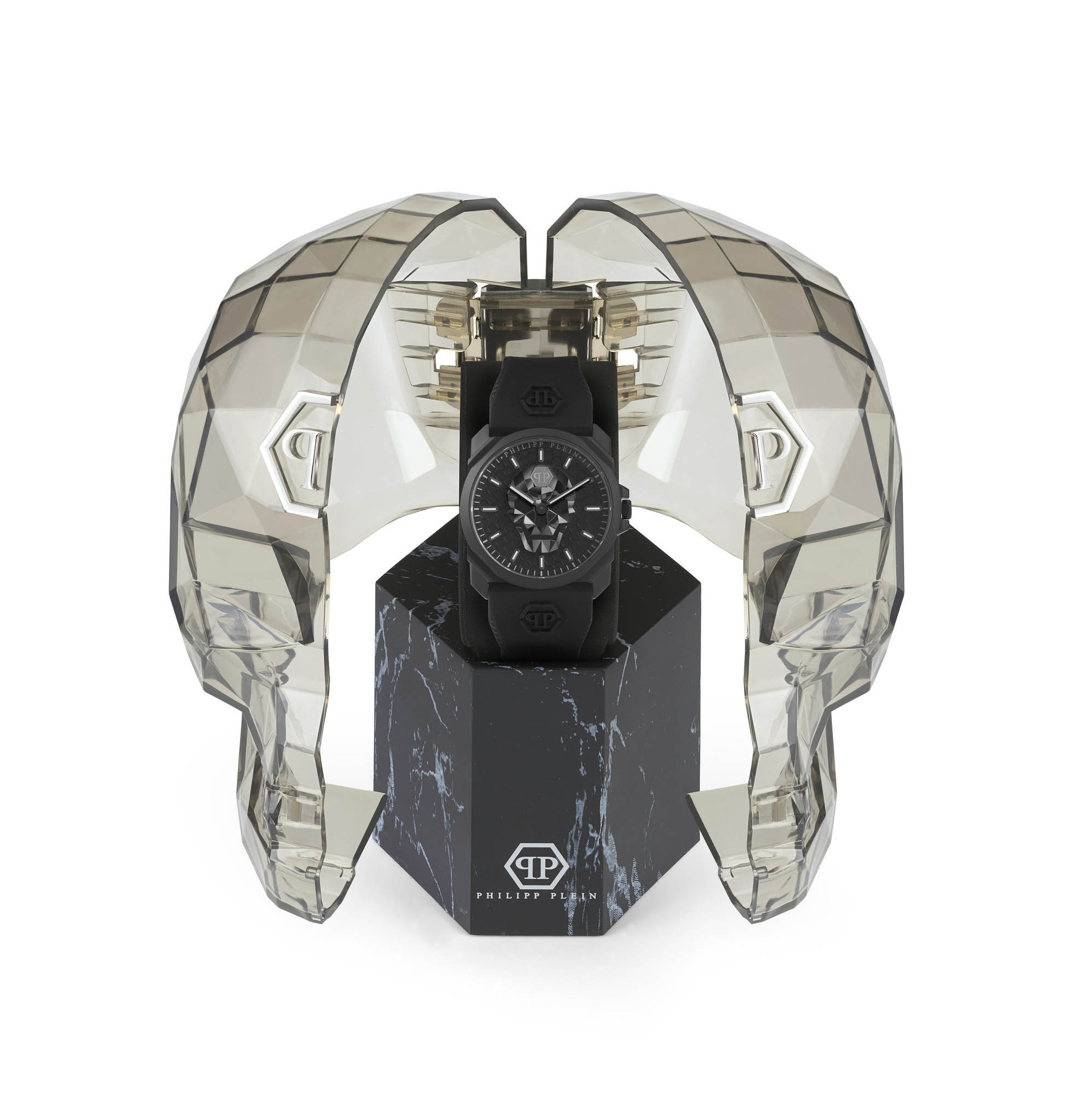 Мужские кварцевые часы с фирменным изображением черепа Philipp Plein The Skull King PWLAA0422, кварцевый механизм с высокой точностью. Класс водозащиты: 50 метров, позволит защитить корпус от случайных брызг или капель дождя. Корпус часов изготовлен из стали с IP-покрытиемIP-покрытиеМетод ионного напыления. Демонстрирует повышенную устойчивость к истиранию, окислению и химическим веществам. Под воздействием высокого давления и температуры около 1500°C молекулы металла надёжно соединяются с частицами корпуса часов. черного цвета. Черный силиконовый ремешок шириной 26 мм, стандартная застежка. Прочное минеральное стеклоМинеральное стеклоМинеральное стекло представляет собой искусственно выращенный минерал кварца. Такое стекло отличается особой устойчивостью к повреждениям и царапинам. Уступает по некоторым качествам сапфировому стеклу. устойчивое к мелким механическим повреждениям.