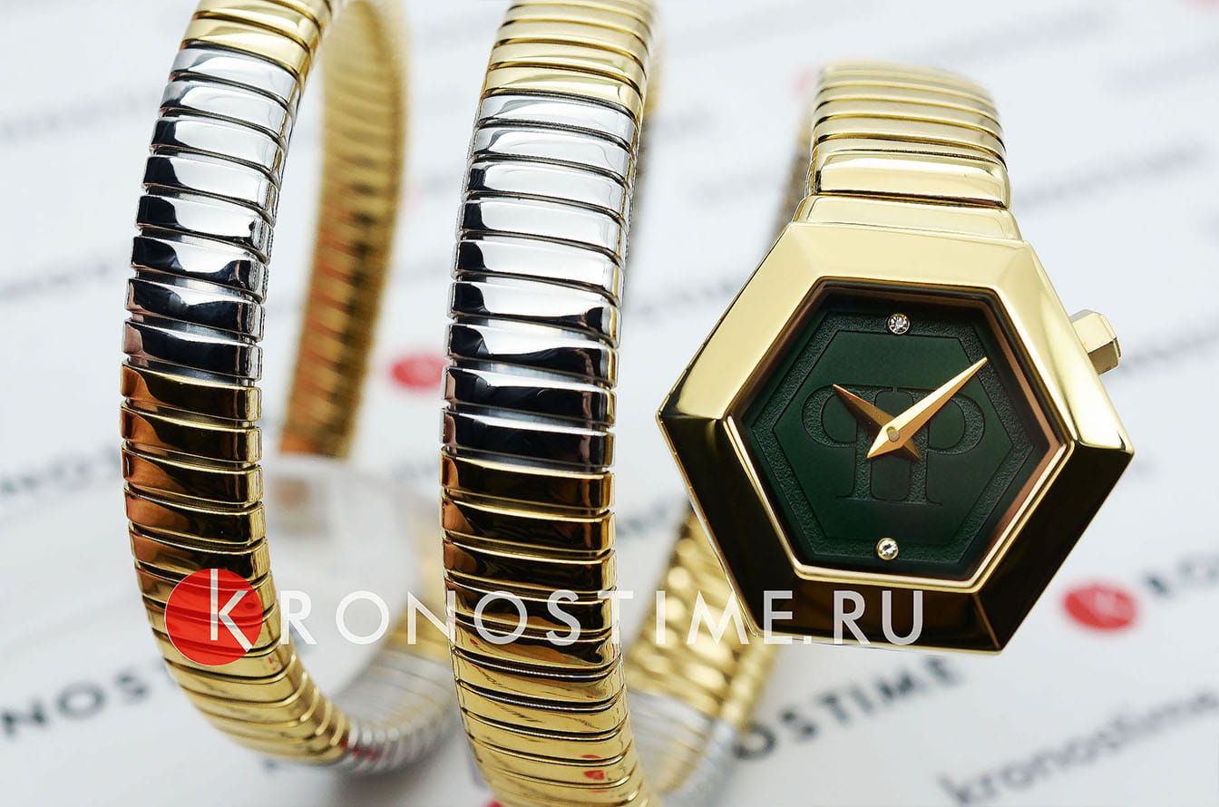 Яркие женские часы  Philipp Plein Snake Hexagon PWZAA0323 с минеральным стекломМинеральное стеклоМинеральное стекло представляет собой искусственно выращенный минерал кварца. Такое стекло отличается особой устойчивостью к повреждениям и царапинам. Уступает по некоторым качествам сапфировому стеклу.. Символ неотразимого гламура и роскоши. Соблазнительное воплощение легендарной утонченности, такой аксессуар - неотразимый символ, который вселяет в женщин уверенность и силу. Авангардная геометрия, чувственные изгибы, изысканная привлекательность и драгоценные мысли - все это сделает вас непревзойденной. Корпус изготовлен из стали с IP-покрытиемIP-покрытиеМетод ионного напыления. Демонстрирует повышенную устойчивость к истиранию, окислению и химическим веществам. Под воздействием высокого давления и температуры около 1500°C молекулы металла надёжно соединяются с частицами корпуса часов..