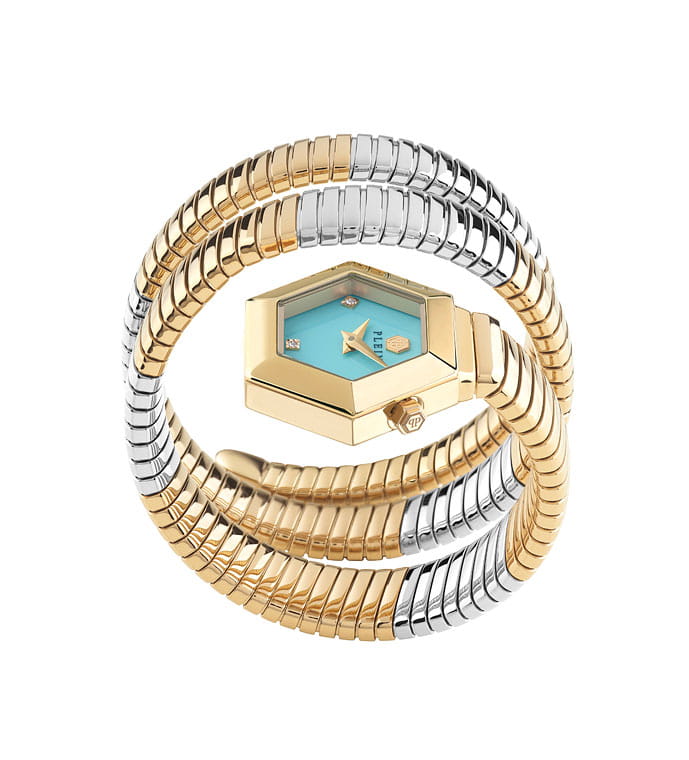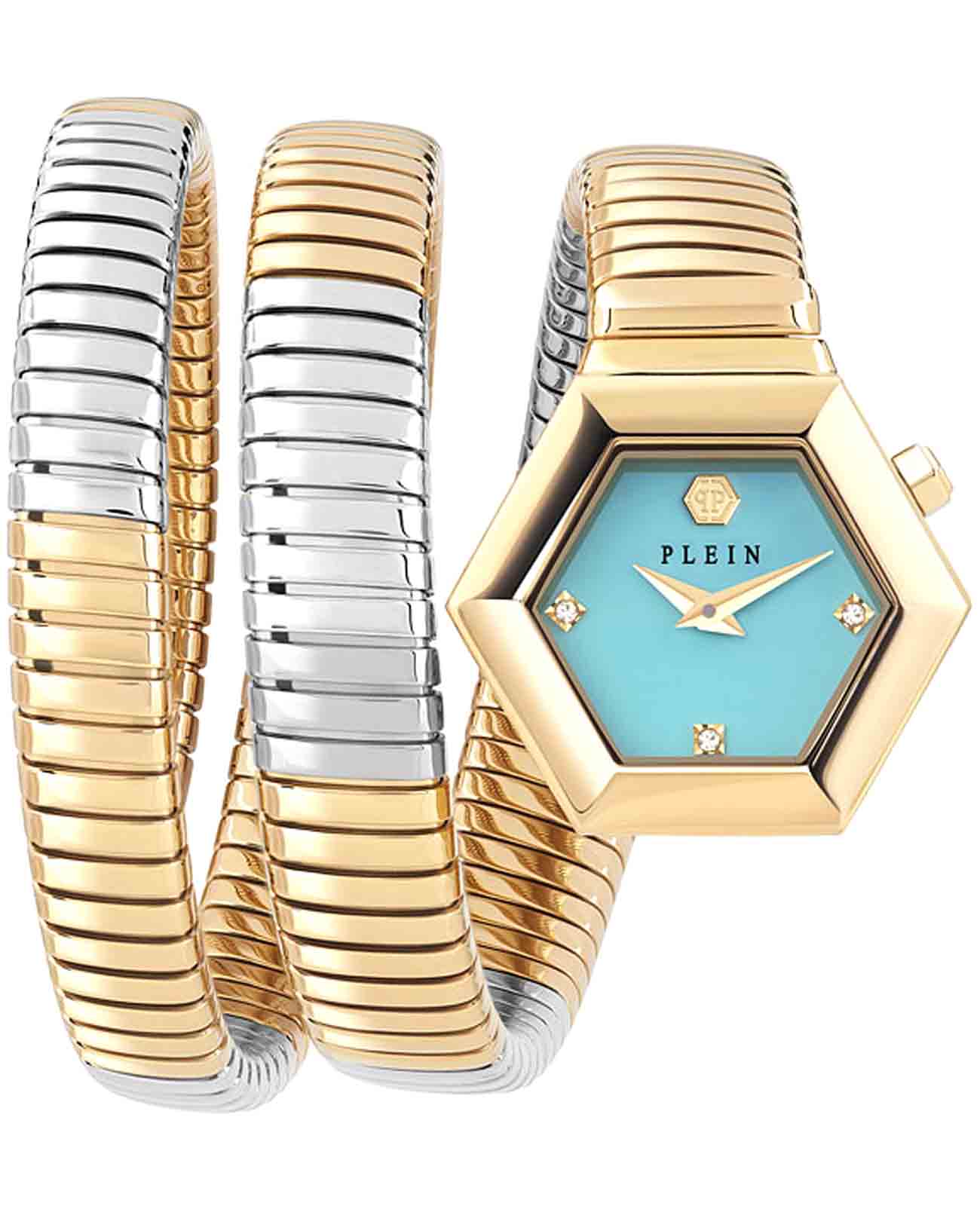 Кварцевые женские часы Philipp Plein Snake Hexagon PWZAA0725 - символ неотразимого гламура и роскоши. Соблазнительное воплощение легендарной утонченности, такой аксессуар вселяет в женщин уверенность и силу. Авангардная геометрия, чувственные изгибы, изысканная привлекательность - все это сделает вас непревзойденной. Минеральное стеклоМинеральное стеклоМинеральное стекло представляет собой искусственно выращенный минерал кварца. Такое стекло отличается особой устойчивостью к повреждениям и царапинам. Уступает по некоторым качествам сапфировому стеклу. защищает циферблат от царапин. Диаметр корпуса из прочной нержавеющей стали с PVD-покрытиемPVDУльтратонкое покрытие наносится в технике вакуумного напыления, сочетает в себе нитрид титана особой прочности со слоем золота или оксида хрома. Несёт в себе декоративную или защитную функцию. равен 28 мм. Стальной браслет обеспечивает надёжную фиксацию и комфортное ношение. Циферблат украшен кристаллами Preciosa. Шестигранная заводная головка. Влагозащита: 50 метров, позволит защитить корпус от случайных брызг или капель дождя. Идеальный аксессуар для тех, кто ценит индивидуальность и не боится выделяться из толпы.
