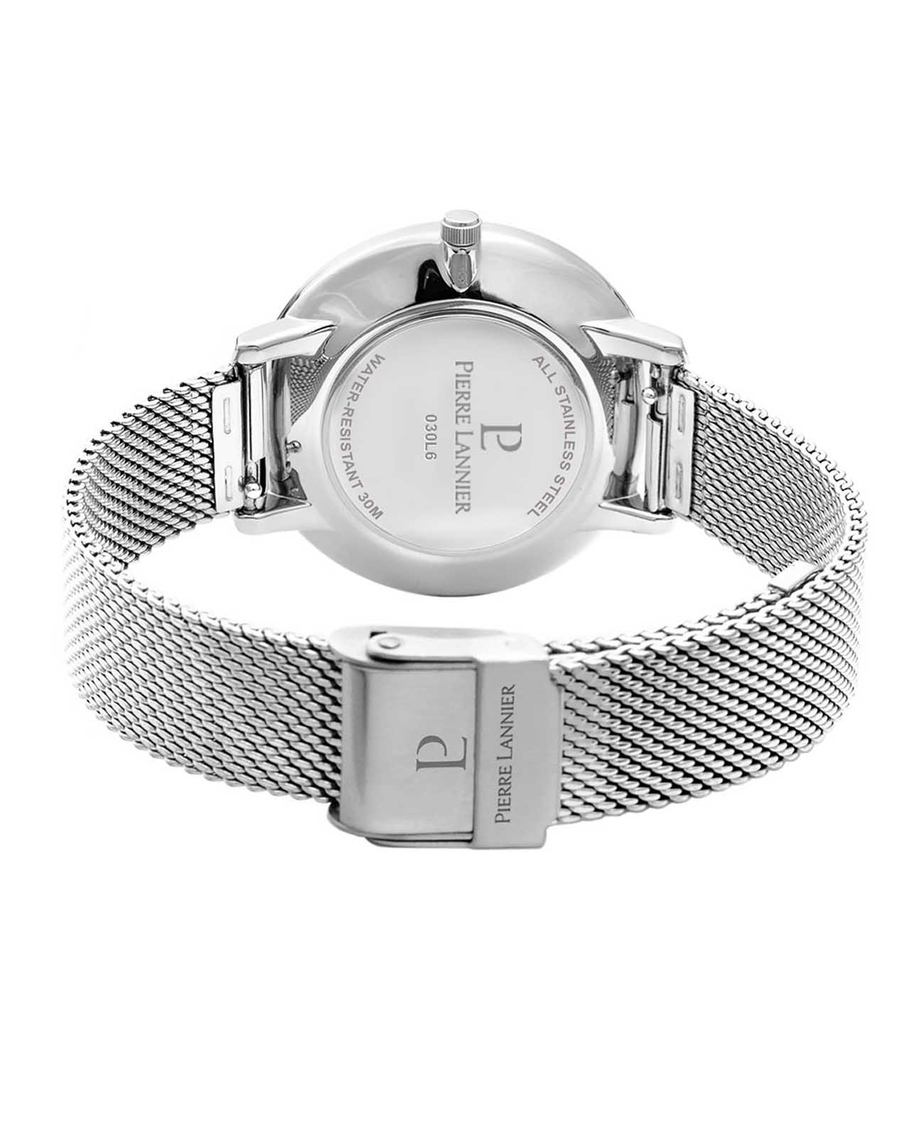 Женские часы Pierre Lannier Ocean 030L698, кварцевый механизм с высокой точностью. Прочное минеральное стеклоМинеральное стеклоМинеральное стекло представляет собой искусственно выращенный минерал кварца. Такое стекло отличается особой устойчивостью к повреждениям и царапинам. Уступает по некоторым качествам сапфировому стеклу., устойчивое к мелким механическим повреждениям. Круглый корпус выполнен из нержавеющей стали. Перламутровый циферблат украшает уникальное изображение глаза Сент-Люсии. Центральные часовая и минутная стрелки. Класс водозащиты: 30 метров, позволит защитить корпус от случайных брызг или капель дождя. Стальной браслет миланского плетения на раскладном замкеРаскладной замокДанный вариант застежки используется только на часах с металлическим браслетом. Отличительная особенность такого крепления в том, что длина браслета становится универсальной и вы можете самостоятельно отрегулировать нужный вам размер – застежка просто двигается по браслету часов..