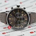 Pierre Lannier Baron 220H490 — выразительный мужской хронограф с индустриальной эстетикой. Диаметр корпуса — 43 мм, выполнен из нержавеющей стали с антрацитовым PVDPVDУльтратонкое покрытие наносится в технике вакуумного напыления, сочетает в себе нитрид титана особой прочности со слоем золота или оксида хрома. Несёт в себе декоративную или защитную функцию.-покрытием, придающим мужественный и современный вид . Циферблат графитового оттенка с эффектом «солнечного луча» украшен тремя функциональными счётчиками: 24‑часовые, секунднометрические и минутные — дополнены аккуратным окном даты между «4 и 5 часами». Чёткие часовые метки и стрелки в золотистом исполнении создают чёткий контраст с тёмным фоном . Циферблат защищён минеральным стекломМинеральное стеклоМинеральное стекло представляет собой искусственно выращенный минерал кварца. Такое стекло отличается особой устойчивостью к повреждениям и царапинам. Уступает по некоторым качествам сапфировому стеклу., устойчивым к повседневным воздействиям. Механизм — надёжный японский кварцевый Miyota (JS25) с функцией хронографа, простой в использовании и обслуживании Ремешок выполнен из перфорированной серой кожи классической ширины 20 мм, обеспечивая комфорт и дыхание коже. Завершён традиционной пряжкой. Водозащита до 5 ATM (≈50 м) позволяет спокойно носить часы в условиях случайных брызг и дождя Baron — это гармония строгого индустриального стиля, универсальности и точной функциональности хронографа, подчеркнутых качественным PVD-покрытием и практичными материалами.