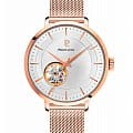 Женские механические часы с автоподзаводом Pierre Lannier Automatic 307F928. Минеральное стеклоМинеральное стеклоМинеральное стекло представляет собой искусственно выращенный минерал кварца. Такое стекло отличается особой устойчивостью к повреждениям и царапинам. Уступает по некоторым качествам сапфировому стеклу. устойчивое к мелким механическим повреждениям. Центральные часовая, минутная и секундная стрелки. Серебристый циферблат с часовыми индексами в виде штрихов. Корпус и браслет выполнен из нержавеющей стали с IP-покрытиемIP-покрытиеМетод ионного напыления. Демонстрирует повышенную устойчивость к истиранию, окислению и химическим веществам. Под воздействием высокого давления и температуры около 1500°C молекулы металла надёжно соединяются с частицами корпуса часов.. Водостойкость: 30 метров, позволит защитить корпус от случайных брызг или капель дождя. Прозрачная задняя крышка. Браслет миланского плетения с раскладной застёжкойРаскладная застёжкаТакой тип застёжки используется только на браслетах из металла. Она никогда не раскрывается полностью, происходит разделение на 2 и более частей. Раскладывающая застёжка снизит вероятность потери часов к минимуму..