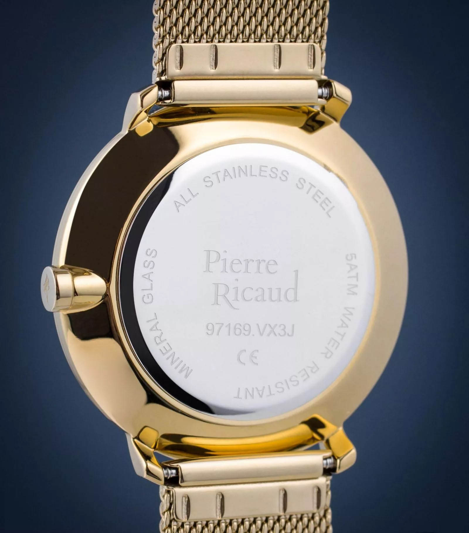 Мужские часы с минеральным стекломМинеральное стеклоМинеральное стекло представляет собой искусственно выращенный минерал кварца. Такое стекло отличается особой устойчивостью к повреждениям и царапинам. Уступает по некоторым качествам сапфировому стеклу. Pierre Ricaud P97169.1116QF, кварцевый механизм с высокой точностью. Класс водозащиты: 50 метров, позволит защитить корпус от случайных брызг или капель дождя. Корпус часов изготовлен из стали с IP-покрытиемIP-покрытиеМетод ионного напыления. Демонстрирует повышенную устойчивость к истиранию, окислению и химическим веществам. Под воздействием высокого давления и температуры около 1500°C молекулы металла надёжно соединяются с частицами корпуса часов.. Стальной браслет на раскладной застёжкеРаскладная застёжкаТакой тип застёжки используется только на браслетах из металла. Она никогда не раскрывается полностью, происходит разделение на 2 и более частей. Раскладывающая застёжка снизит вероятность потери часов к минимуму. с IP-покрытиемIP-покрытиеМетод ионного напыления. Демонстрирует повышенную устойчивость к истиранию, окислению и химическим веществам. Под воздействием высокого давления и температуры около 1500°C молекулы металла надёжно соединяются с частицами корпуса часов..