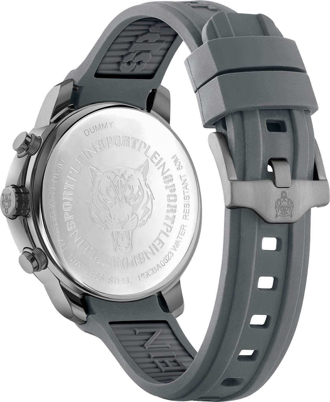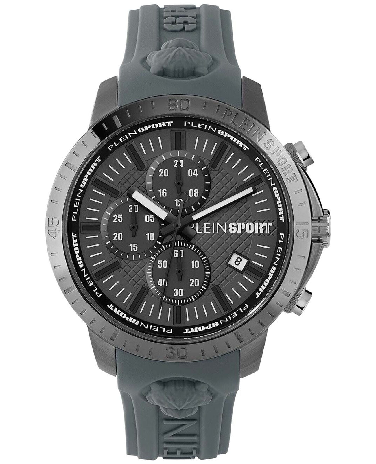 Немецкие мужские кварцевые часы-хронографХронографФункция позволяет измерять отрезки времени с особой точностью: часы, минуты, секунды. Верным признаком хронографа является наличие на циферблате 3 дополнительных окошек-счётчиков. с секундомеромСекундомерСекундоме́р — прибор, способный измерять интервалы времени с точностью до долей секунды. Plein Sport Plain Gain PSCBA0623, кварцевый механизм с высокой точностью. Класс водозащиты: 50 метров, позволит защитить корпус от случайных брызг или капель дождя. Корпус часов изготовлен из стали с IP-покрытиемIP-покрытиеМетод ионного напыления. Демонстрирует повышенную устойчивость к истиранию, окислению и химическим веществам. Под воздействием высокого давления и температуры около 1500°C молекулы металла надёжно соединяются с частицами корпуса часов.. Стрелки и метки с люминесцентным покрытиемЛюминесцентное покрытиеПозволяет считывать показания времени в темноте. Производители наносят на стрелки, часовые индексы, безель или поверхность циферблата светонакопительный состав, дающий холодное свечение.. Удобный силиконовый ремешок с классической застежкой. Окошко даты находится в положении 4 часов.