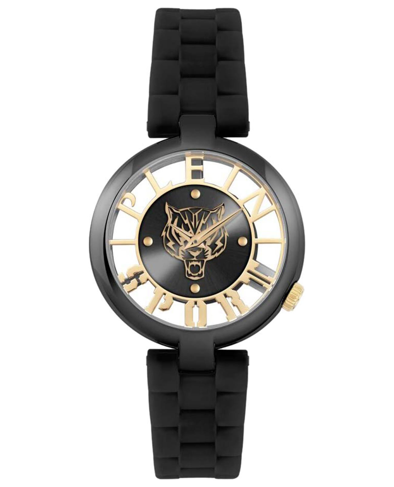 Немецкие женские кварцевые часы с минеральным стекломМинеральное стеклоМинеральное стекло представляет собой искусственно выращенный минерал кварца. Такое стекло отличается особой устойчивостью к повреждениям и царапинам. Уступает по некоторым качествам сапфировому стеклу. Plein Sport Tiger Luxe PSMBA0923, кварцевый механизм с высокой точностью. Класс водозащиты: 50 метров, позволит защитить корпус от случайных брызг или капель дождя. Корпус часов изготовлен из стали с IP-покрытиемIP-покрытиеМетод ионного напыления. Демонстрирует повышенную устойчивость к истиранию, окислению и химическим веществам. Под воздействием высокого давления и температуры около 1500°C молекулы металла надёжно соединяются с частицами корпуса часов.. Силиконовый ремень на стандартной застёжке.