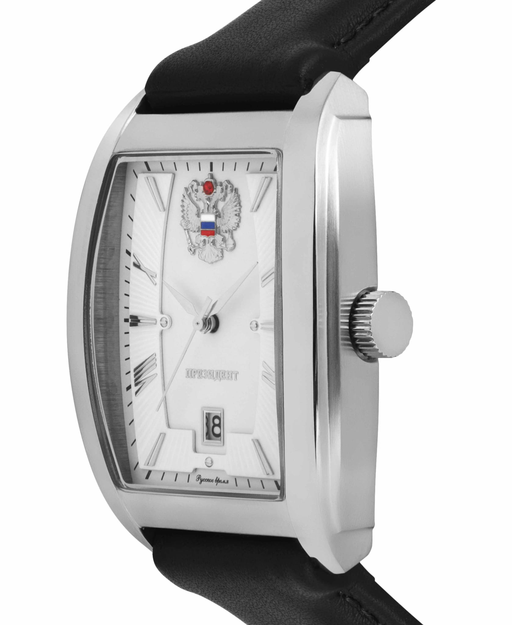 Мужские классические часы Русское Время из коллекции Президент — это воплощение точности и стиля, созданные в России. Модель оснащена японским кварцевым механизмом Miyota 2315, обеспечивающим надёжность и стабильность хода. Корпус выполненный из нержавеющей стали, защищён минеральным стекломМинеральное стеклоМинеральное стекло представляет собой искусственно выращенный минерал кварца. Такое стекло отличается особой устойчивостью к повреждениям и царапинам. Уступает по некоторым качествам сапфировому стеклу., устойчивым к мелким повреждениям. Часы имеют окошко даты, расположенное в положении 3 часов, что делает его удобным для восприятия. Ремешок чёнрного цвета изготовлен из натуральной кожи и дополнен классической Раскладная застёжкаРаскладная застёжкаТакой тип застёжки используется только на браслетах из металла. Она никогда не раскрывается полностью, происходит разделение на 2 и более частей. Раскладывающая застёжка снизит вероятность потери часов к минимуму., обеспечивающей комфорт и надёжную фиксацию на запястье. Ширина ремешка составляет 22 мм, а его размеры — 37x49 мм, толщина — 11 мм. Часы водонепроницаемы до 30 метров (), что позволяет использовать их в повседневных условиях — при мытье рук или под лёгким дождём. Эти часы станут универсальным аксессуаром для тех, кто ценит сочетание точности, качества и элегантного дизайна — идеальный выбор для повседневной носки и делового образа.
