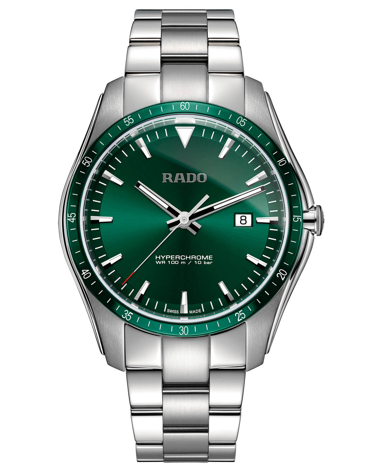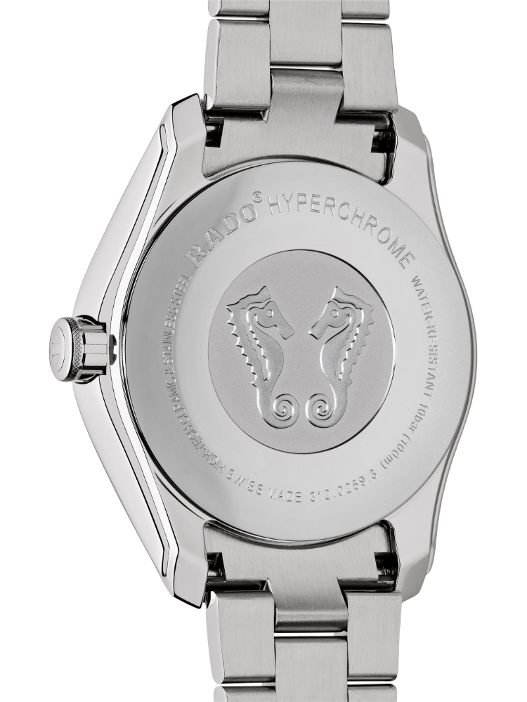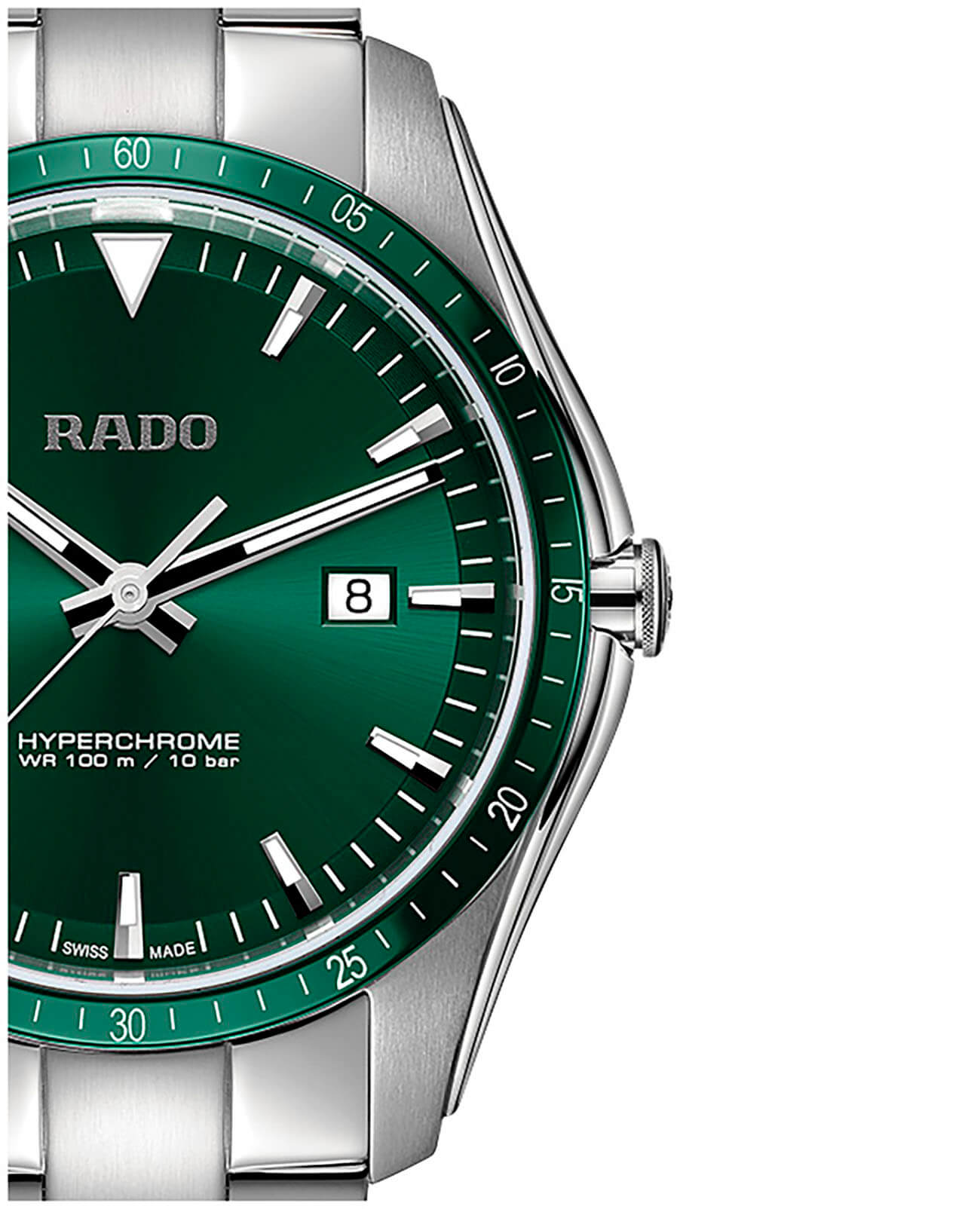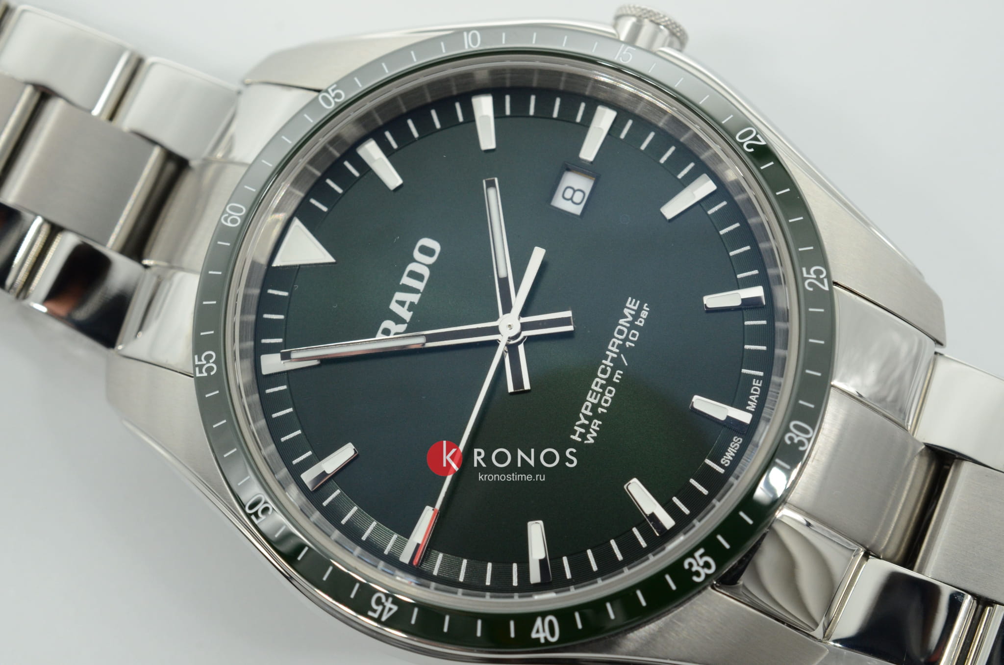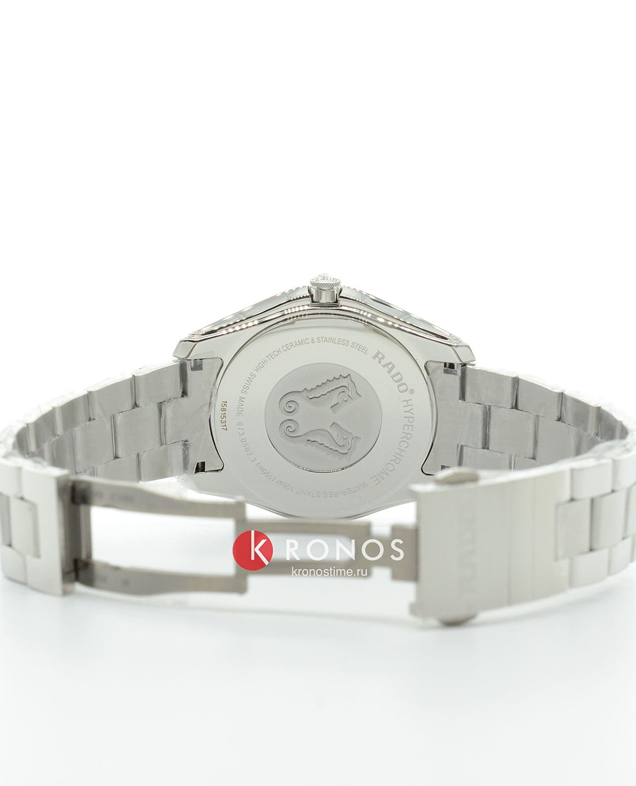 Швейцарские кварцевые часы Rado Hyperchrome R32502313. Сапфировое стеклоСапфировое стеклоПрочный и надёжный материал из кристалла сапфира синтетического происхождения, характеризующийся особой твёрдостью и устойчивостью к царапинам и повреждениям. устойчивое к мелким механическим повреждениям. Корпус изготовлен из нержавеющей стали. БезельБезельВнешний ободок, закрепляющий стекло. В спортивных часах так называется поворотное кольцо с делениями на циферблате, выполняет роль таймера – замеряет отрезки времени на шкале. Неподвижный безель – элемент декора. Однонаправленно вращающийся безель на дайверских часах позволяет фиксировать моменты погружения и выныривания на поверхность. из  высокотехнологичной керамикиВысокотехнологичная керамикаИнновационный запатентованный Rado материал с гладкой или матовой поверхностью. Керамика за счёт кристаллической структуры обладает повышенной устойчивостью от возникновения царапин. Материал способен принимать температуру тела человека, обеспечивая невероятный комфорт при ношении.. Стрелки с люминесцентным покрытиемЛюминесцентное покрытиеПозволяет считывать показания времени в темноте. Производители наносят на стрелки, часовые индексы, безель или поверхность циферблата светонакопительный состав, дающий холодное свечение.. Класс водозащиты: 100 метров, позволит плавать, нырять и заниматься другими водными видами спорта. Браслет из стали на раскладной застёжкеРаскладная застёжкаТакой тип застёжки используется только на браслетах из металла. Она никогда не раскрывается полностью, происходит разделение на 2 и более частей. Раскладывающая застёжка снизит вероятность потери часов к минимуму..