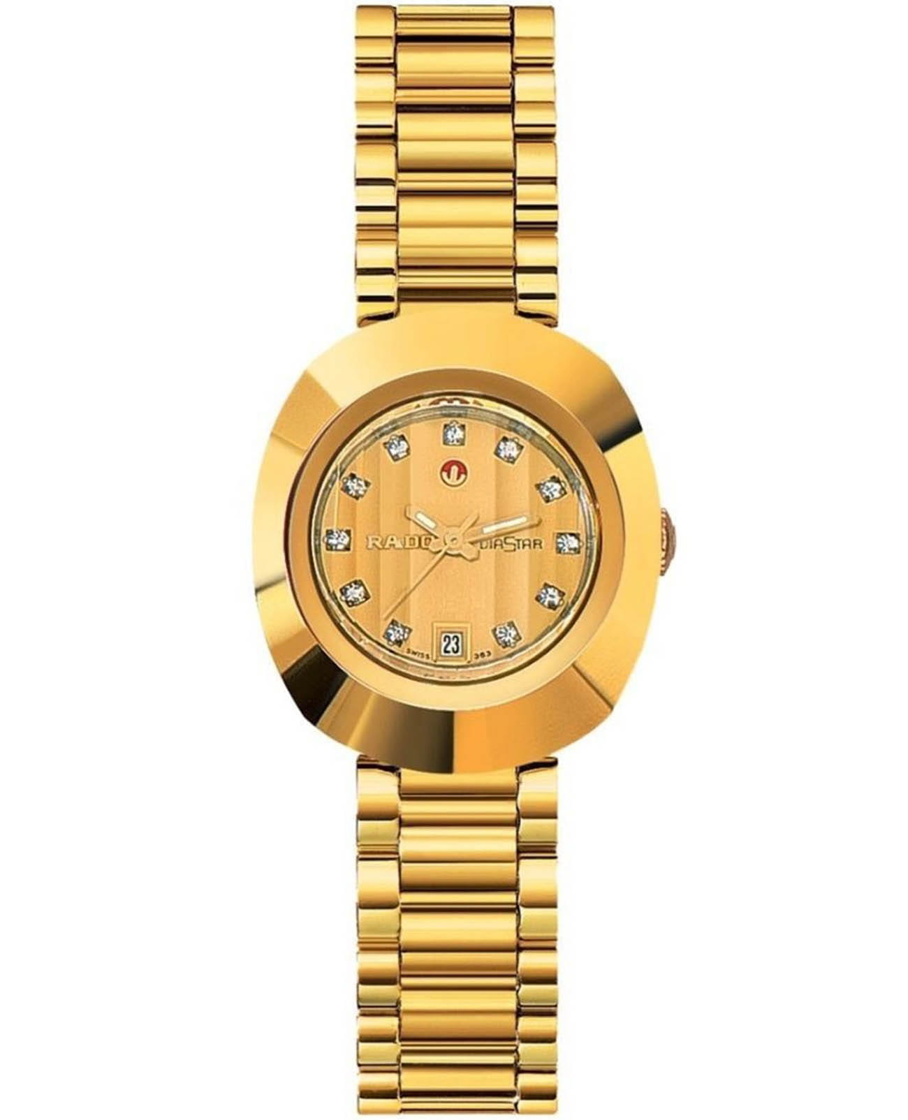 Женские часы Rado The Original Automatic R12416634 с надёжным автоматическим механизмом. Корпус и браслет часов выполнены из нержавеющей стали c PVD-покрытиемPVDУльтратонкое покрытие наносится в технике вакуумного напыления, сочетает в себе нитрид титана особой прочности со слоем золота или оксида хрома. Несёт в себе декоративную или защитную функцию.. Стальной браслет на застёжке-бабочке с кнопкамиЗастёжка "бабочка"Такой вид застёжки дополняется предохранителями, помогающими избежать случайного раскрытия браслета. Обладают изящным исполнением. . Класс водозащиты: 30 метров, позволит защитить корпус от случайных брызг или капель дождя. Окошко даты находится в положении 6 часов. Циферблат инкрустирован сапфирами. Стрелки и метки с люминесцентным покрытиемЛюминесцентное покрытиеПозволяет считывать показания времени в темноте. Производители наносят на стрелки, часовые индексы, безель или поверхность циферблата светонакопительный состав, дающий холодное свечение..