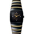 Часы Rado Sintra R13726719, произведение искусства и технологическое чудо, станут прекрасным дополнением к коллекции. Эти швейцарские часы оснащены кварцевым механизмом. Корпус  изготовлен из высокотехнологичной керамикиВысокотехнологичная керамикаИнновационный запатентованный Rado материал с гладкой или матовой поверхностью. Керамика за счёт кристаллической структуры обладает повышенной устойчивостью от возникновения царапин. Материал способен принимать температуру тела человека, обеспечивая невероятный комфорт при ношении.. Браслет изготовлен из керамики со вставками из 18-каратного золота18-каратное золотоОбозначение по каратной системе пробирования, оно показывает, сколько драгоценного металла содержится в изделии. 18 карат - в составе 75% чистого золота, соответствует 750 пробе.