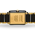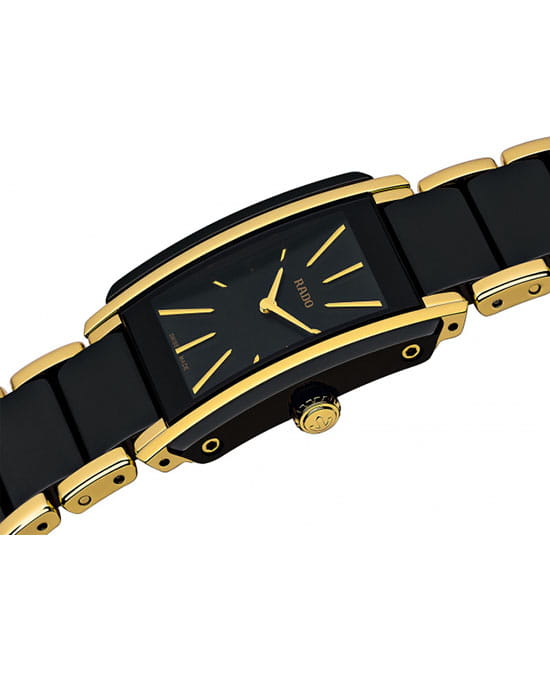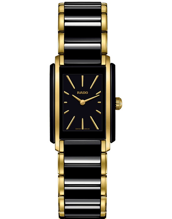 Лаконичный и сдержанный аксессуар точно понравится приверженцам классического стиля, минималистичный циферблат отличается удлинёнными часовыми индексами. Оригинально смотрится сочетание нержавеющей стали 316L и высокотехнологичной керамикиВысокотехнологичная керамикаИнновационный запатентованный Rado материал с гладкой или матовой поверхностью. Керамика за счёт кристаллической структуры обладает повышенной устойчивостью от возникновения царапин. Материал способен принимать температуру тела человека, обеспечивая невероятный комфорт при ношении.. Кварцевый механизм ETA 976.001 с высокой точностью хода. Стекло из сапфира. Водозащита 5 бар. PVD-покрытиеPVDУльтратонкое покрытие наносится в технике вакуумного напыления, сочетает в себе нитрид титана особой прочности со слоем золота или оксида хрома. Несёт в себе декоративную или защитную функцию. золотистого цвета, устойчивое к истиранию. Габариты: 33 x 23 x 6,5 мм.